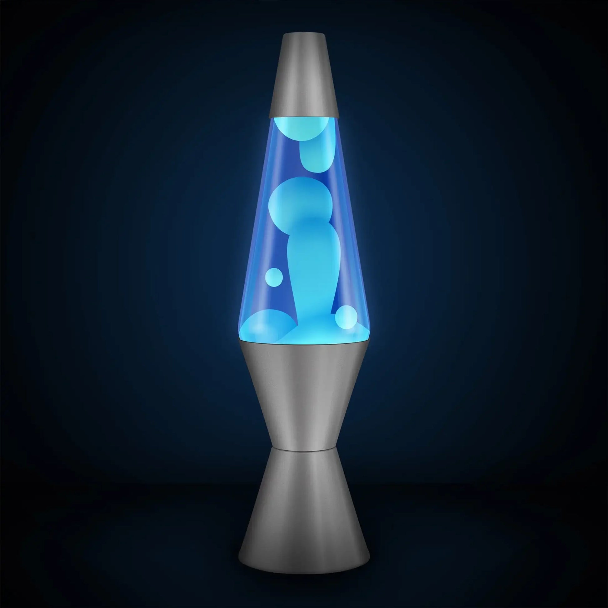 【14.5" White Wax Lava Lamp】Blue Liquid, Silver Base, 25W Bulb. Mood Lighting for Bedroom
