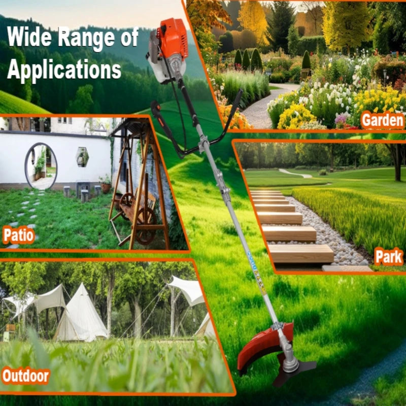 - 2‑in‑1 cutting head: switch between a 28 cm trimmer head and a 27 cm 3-teeth blade for versatile edging and heavy cutting.