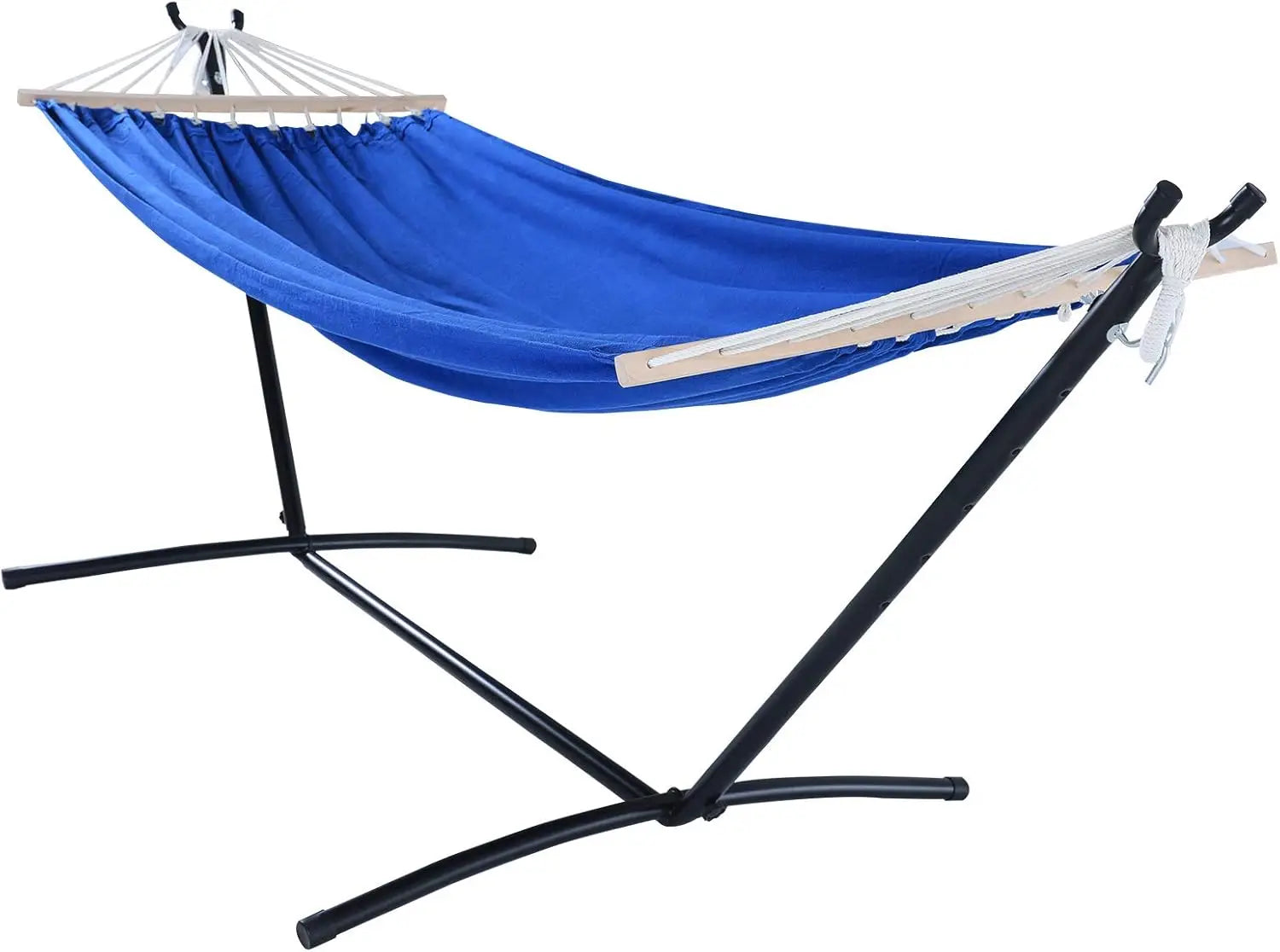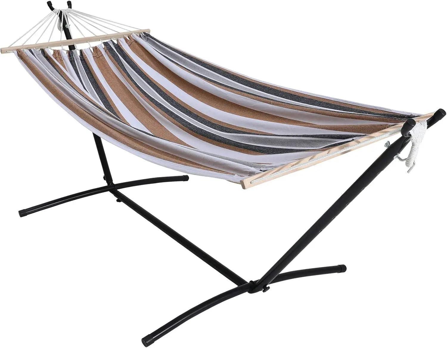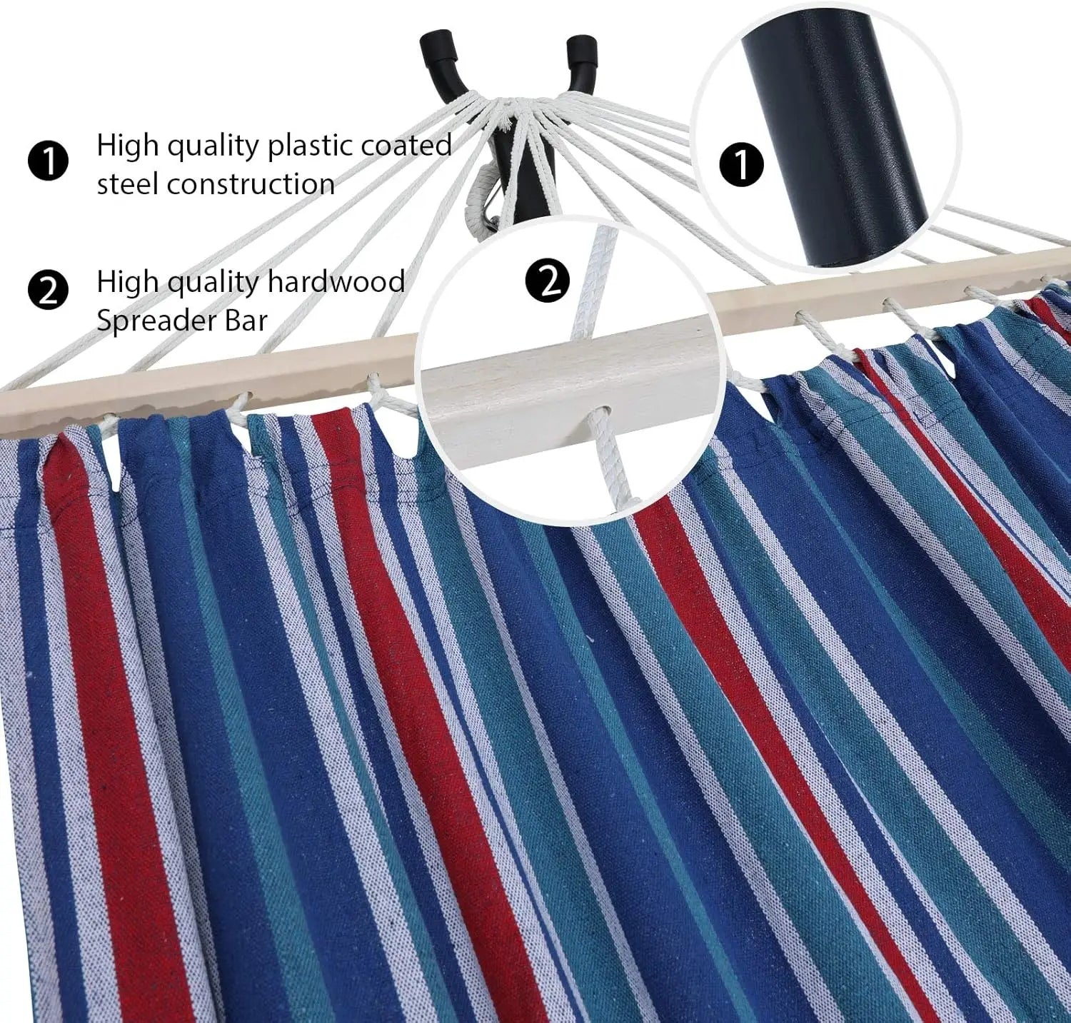 2Person Adjustable Hammock with 10FT Heavy Duty Steel Stand and Spreader Bars550lbs Capacity,Included Portable