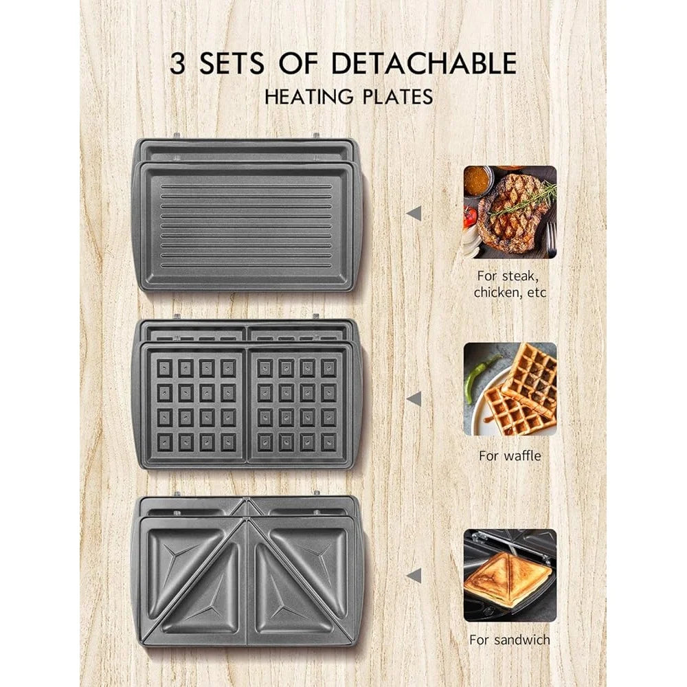 XMSJ 3 In 1 Sandwich Maker Waffle Toaster Grill Nonstick