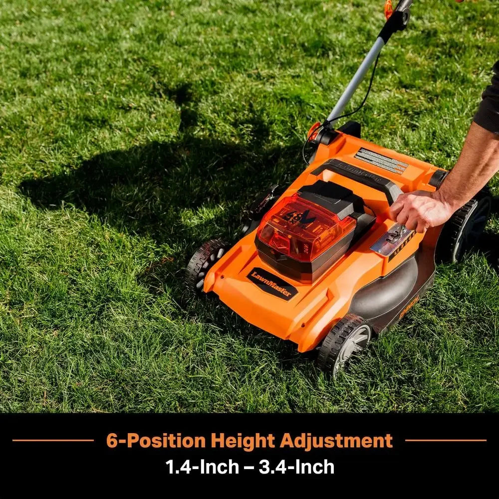 LawnMaster Brushless Cordless Lawn Mower Six Heights Battery