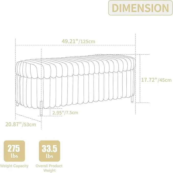 - You can place it anywhere in the living room, entry, or bedroom as a shoe bench, bed bench, footrest, or storage bench, sized at 49.21"D x 20.87"W x 17.72"H.