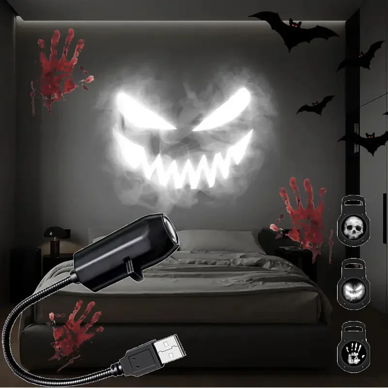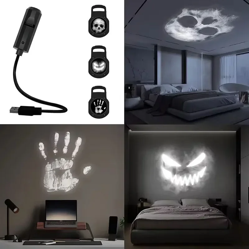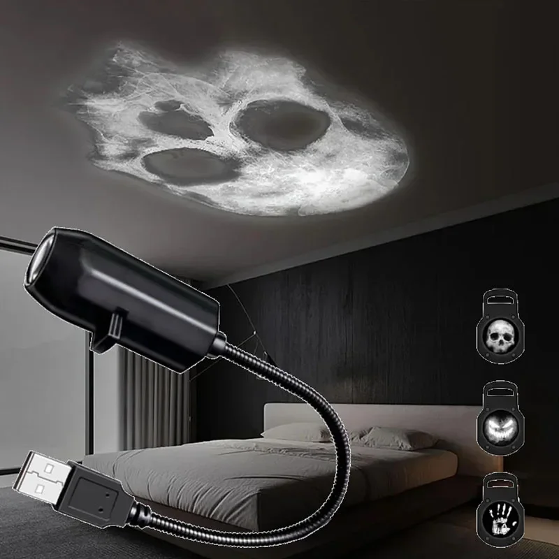 5V Projection Lights Planet Moon Lamp USB Night Light Halloween Christmas Ambiance Skull Ghost Switchable Pattern Projection