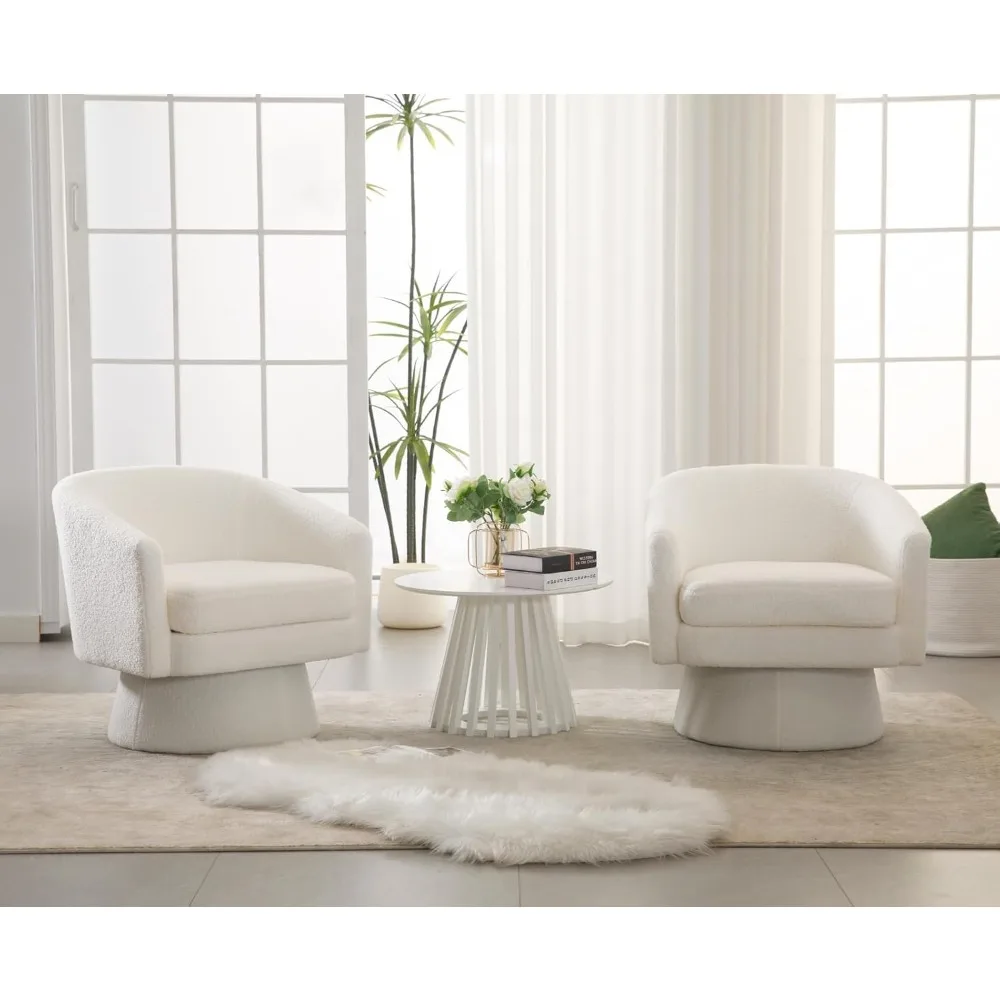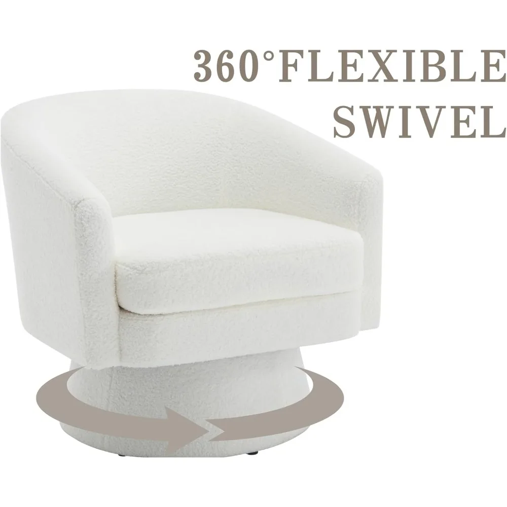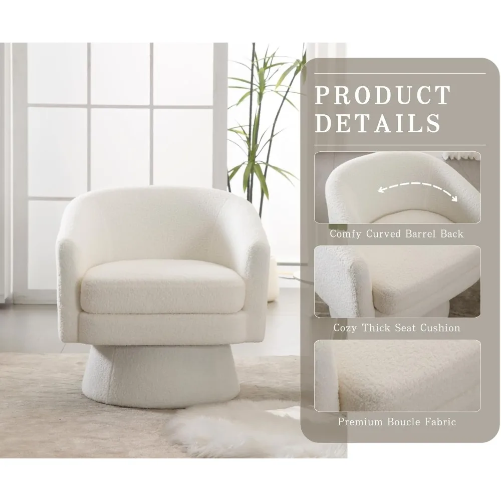 Boucle Swivel Accent Chair White Barrel Arm Chair Round Cozy Upholstered Modern Sherpa Fabric Single Sofa Chair for Living Room/