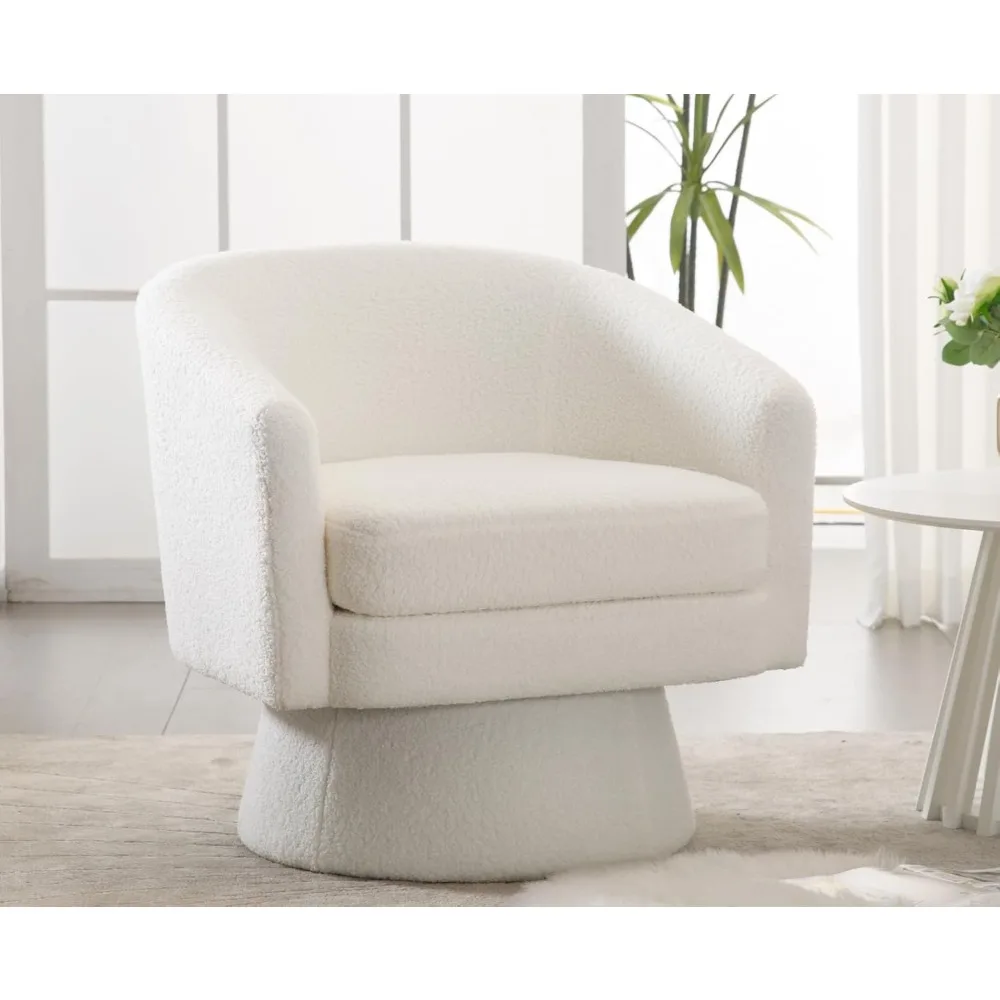 - [360 Degree Swivel]- This barrel chair adds a 360-degree swivel base for added convenience. With solid wood construction inside, and 6 non-slip foot pads, our accent chair can easly hold up to 350 pounds, providing you with a stable, sturdy seating experience.