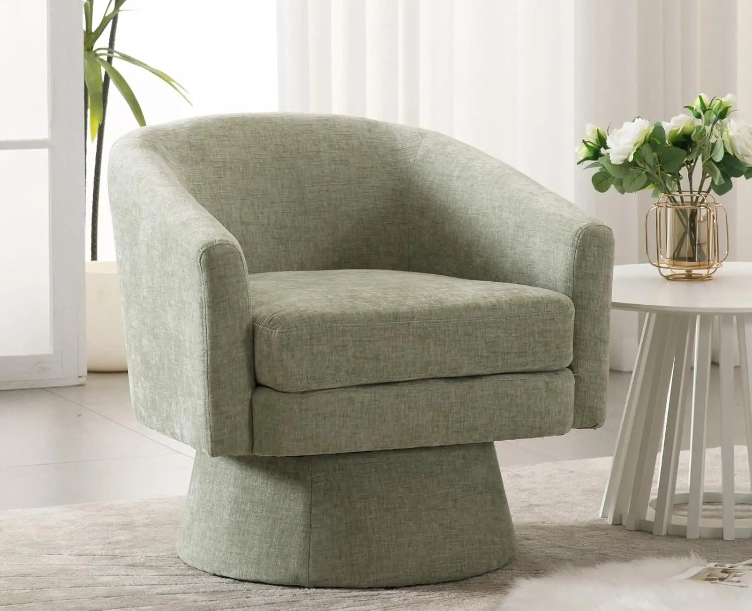 - [Aesthetic Design]- Featuring a unique round barrel back design and warm linen fabric, this swivel single sofa will sure to impress you. Still looking for the right match for your living room corner? Try our accent chair!