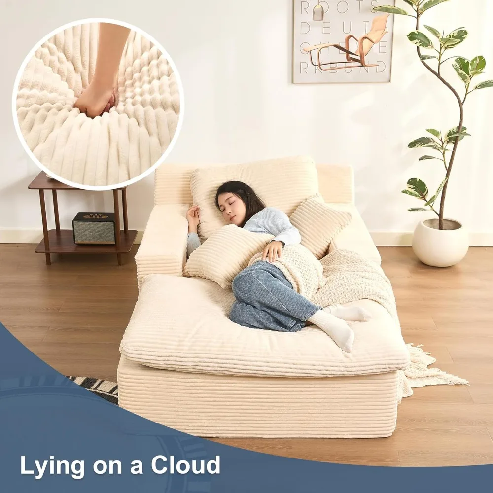 Chaise Lounge Chair Indoor, Extra Cloud Layer, Convertible Sleeper Sofa Couch with Removable Pillows & Side Pockets