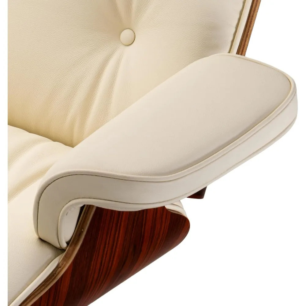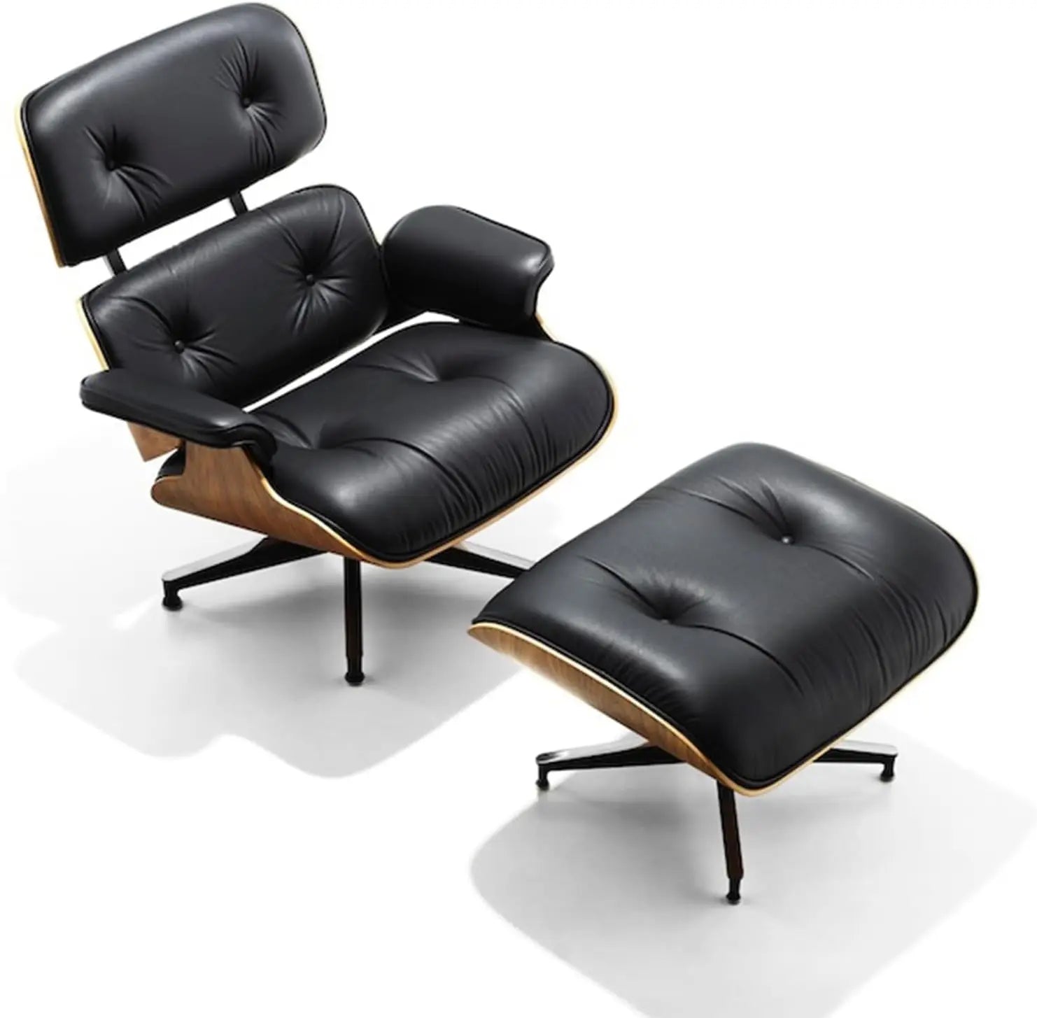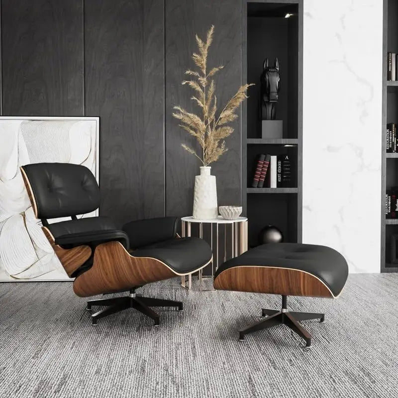 Chaise Lounge Chair with Ottoman Genuine Leather High-Resilience Foam Cushions Mid Century Modern Ergonomic Design