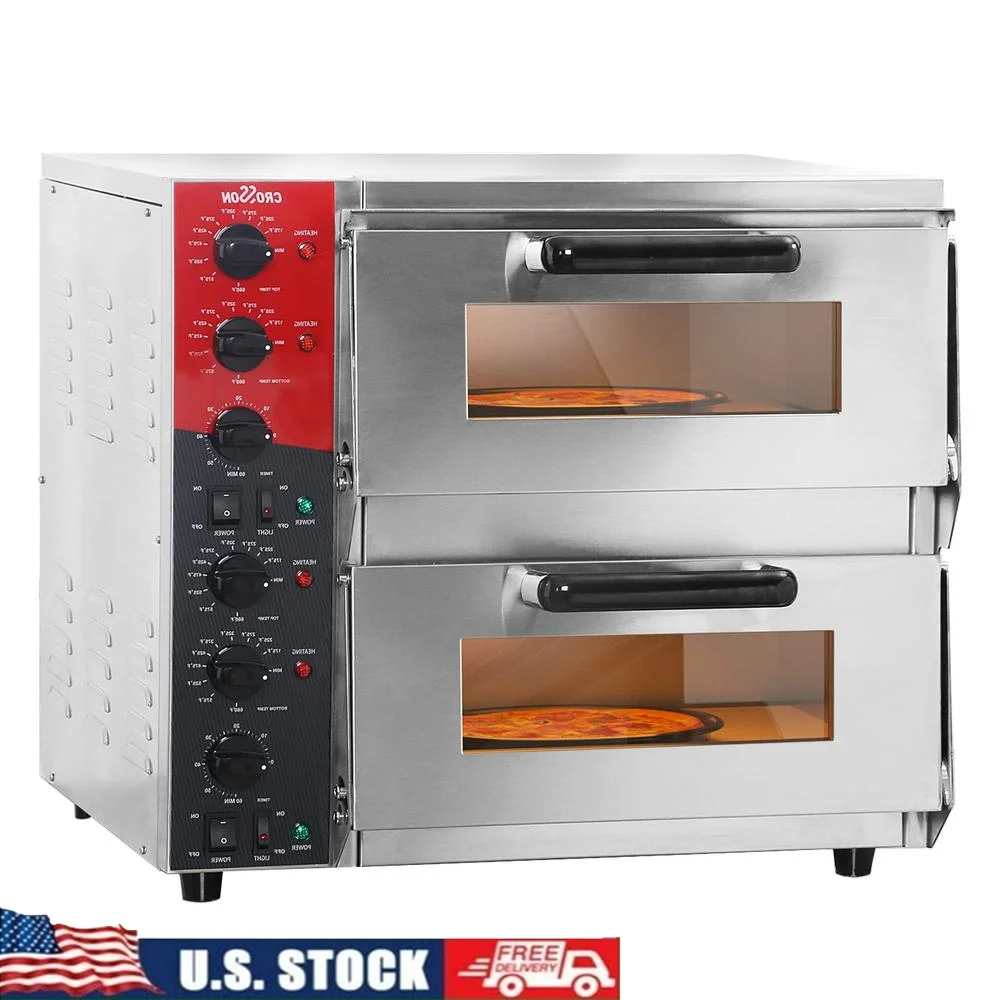Commercial Double Deck Electric Pizza Oven ETL Certified Countertop Pizza Maker with Integrated Light Independent Temperature