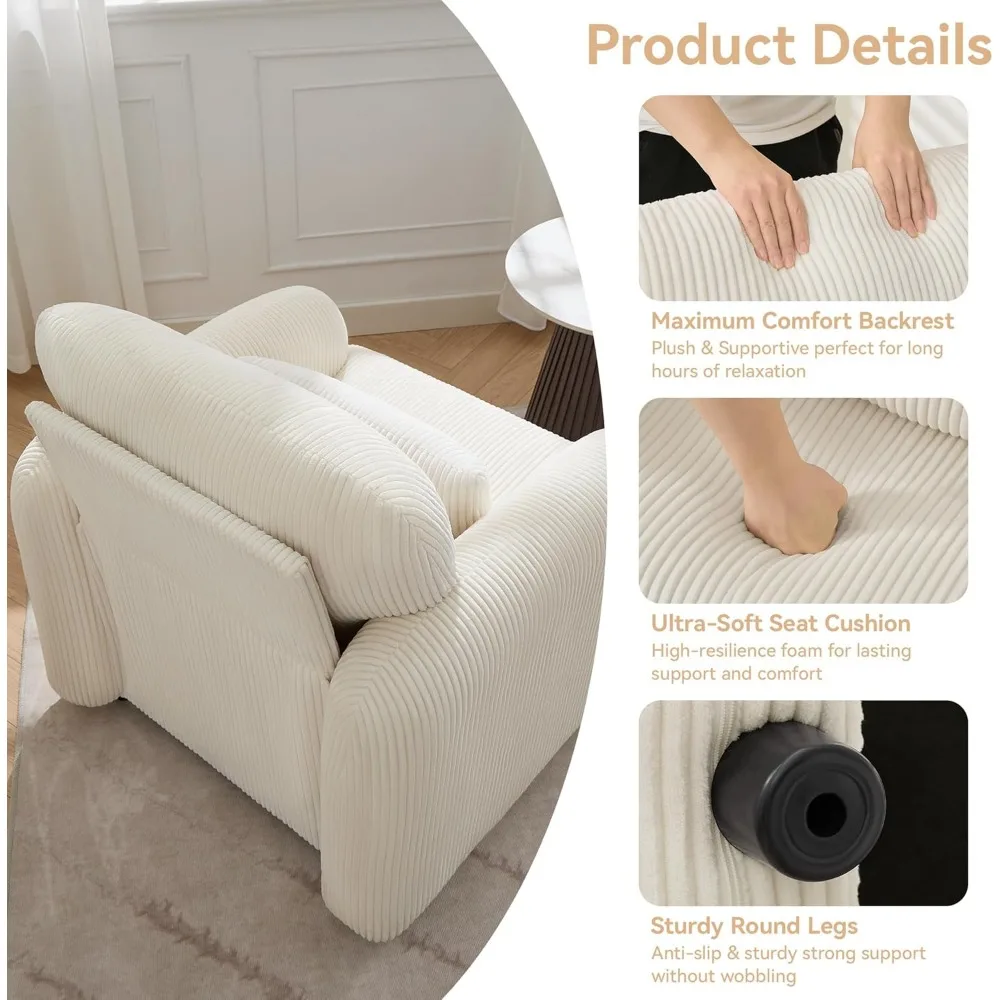 Corduroy Fabric Accent Chair, Modern Upholstered Living Room Chairs with Lumbar Pillow, Wide Comfy Leisure Armchair for Bedroom,