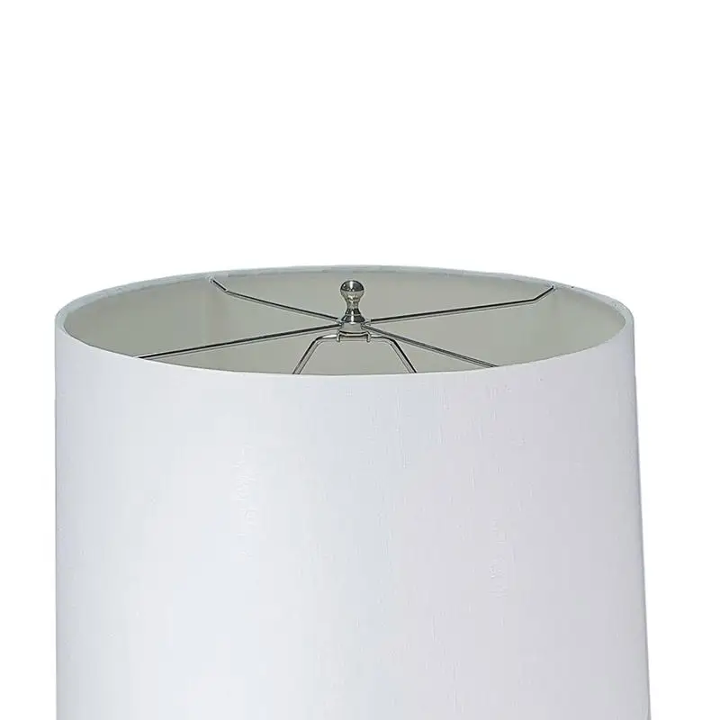 This plug-in, energy-efficient table lamp boasts a dazzling body and drum shade.