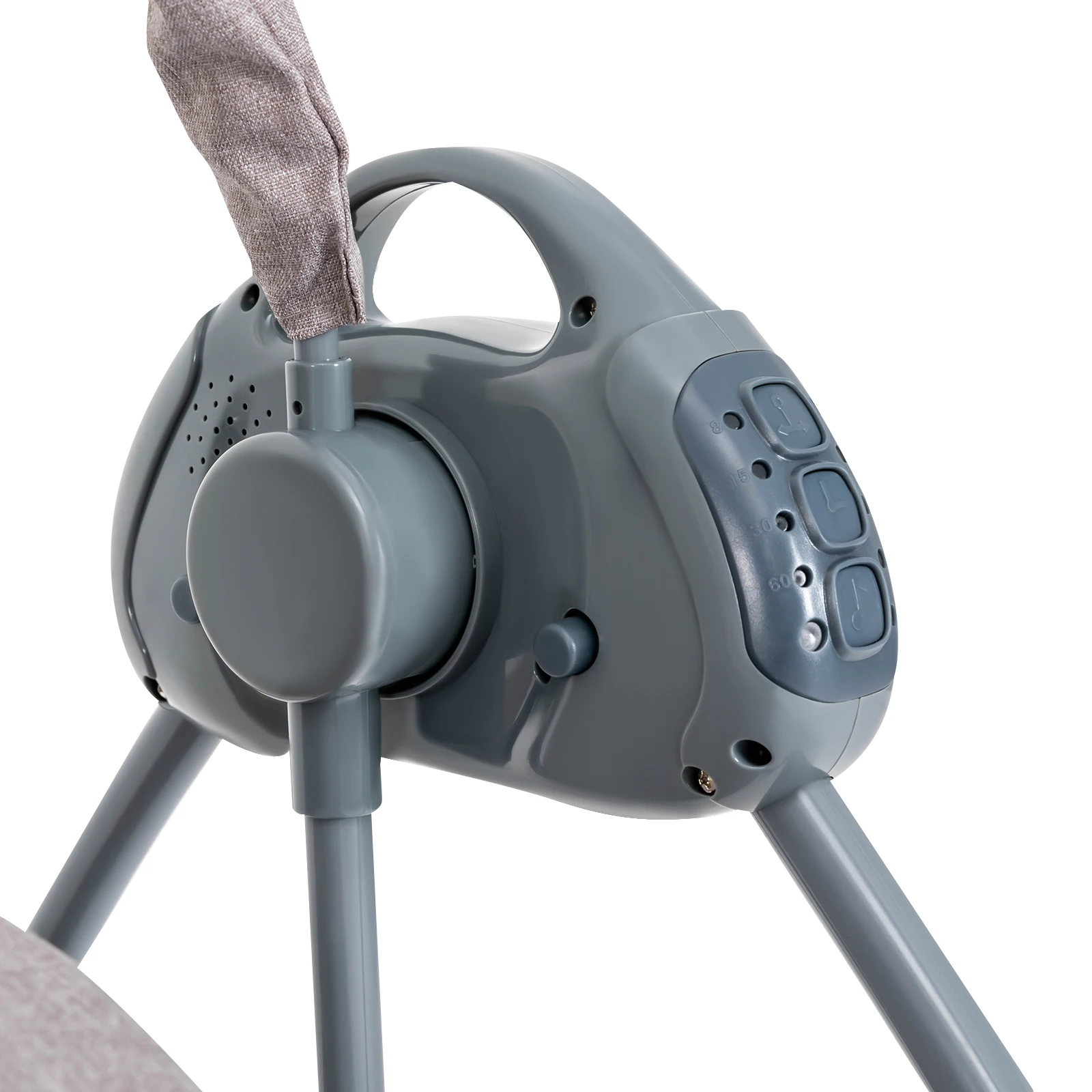 It can be used to coax your baby to sleep and quiet your crying baby indoors and outdoors. It is also suitable for playing and listening to songs and stories in this baby cradle swing.