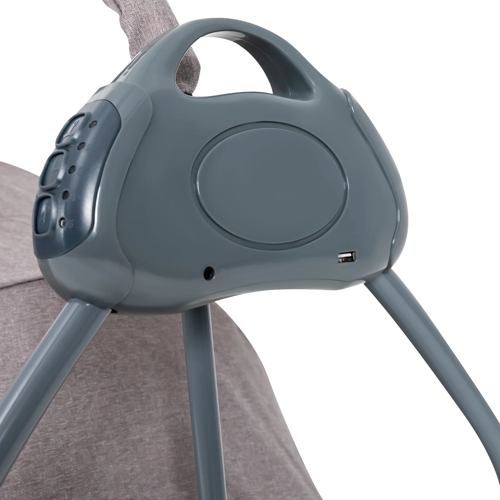 USB Power Cord: This baby cradle swing uses a USB power cord so that you can not only connect to a 5V power supply at home but also use a power bank for charging outside.