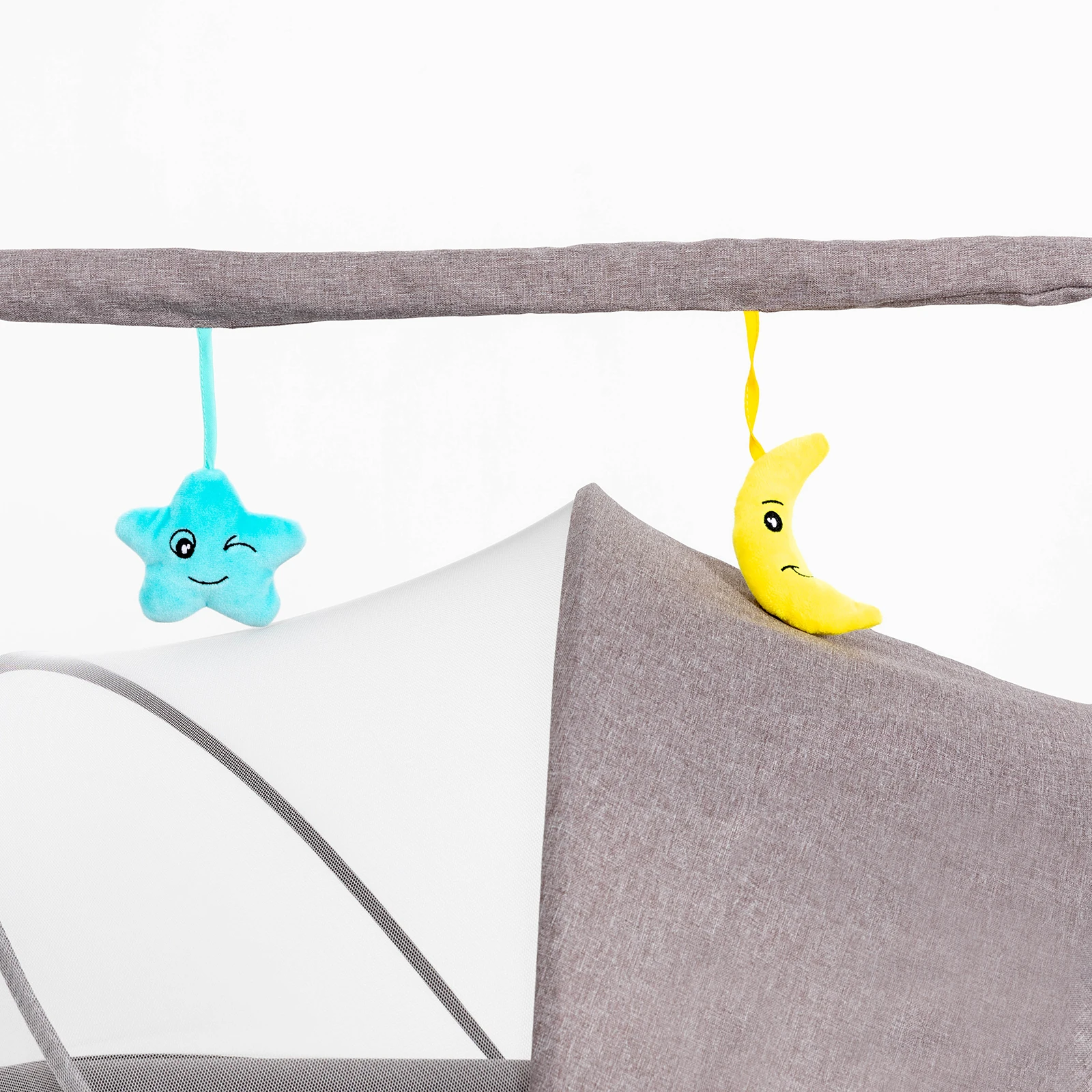 Breathable Mosquito Net: The mosquito net, which is in a fully enclosed ring with a half-thickened design, can not only protect against direct light but also protect against mosquito bites. So the baby can have a comfortable sleep.