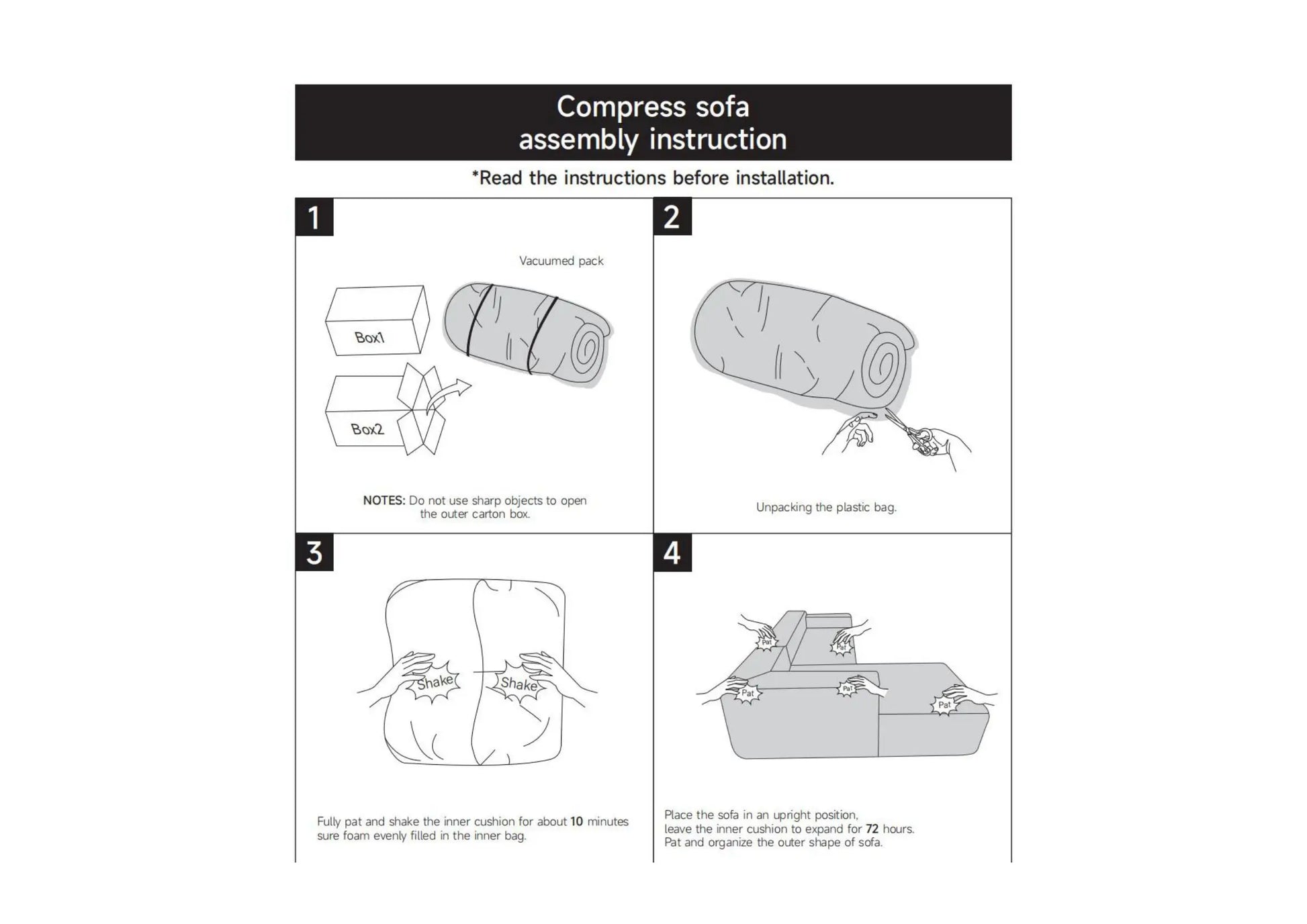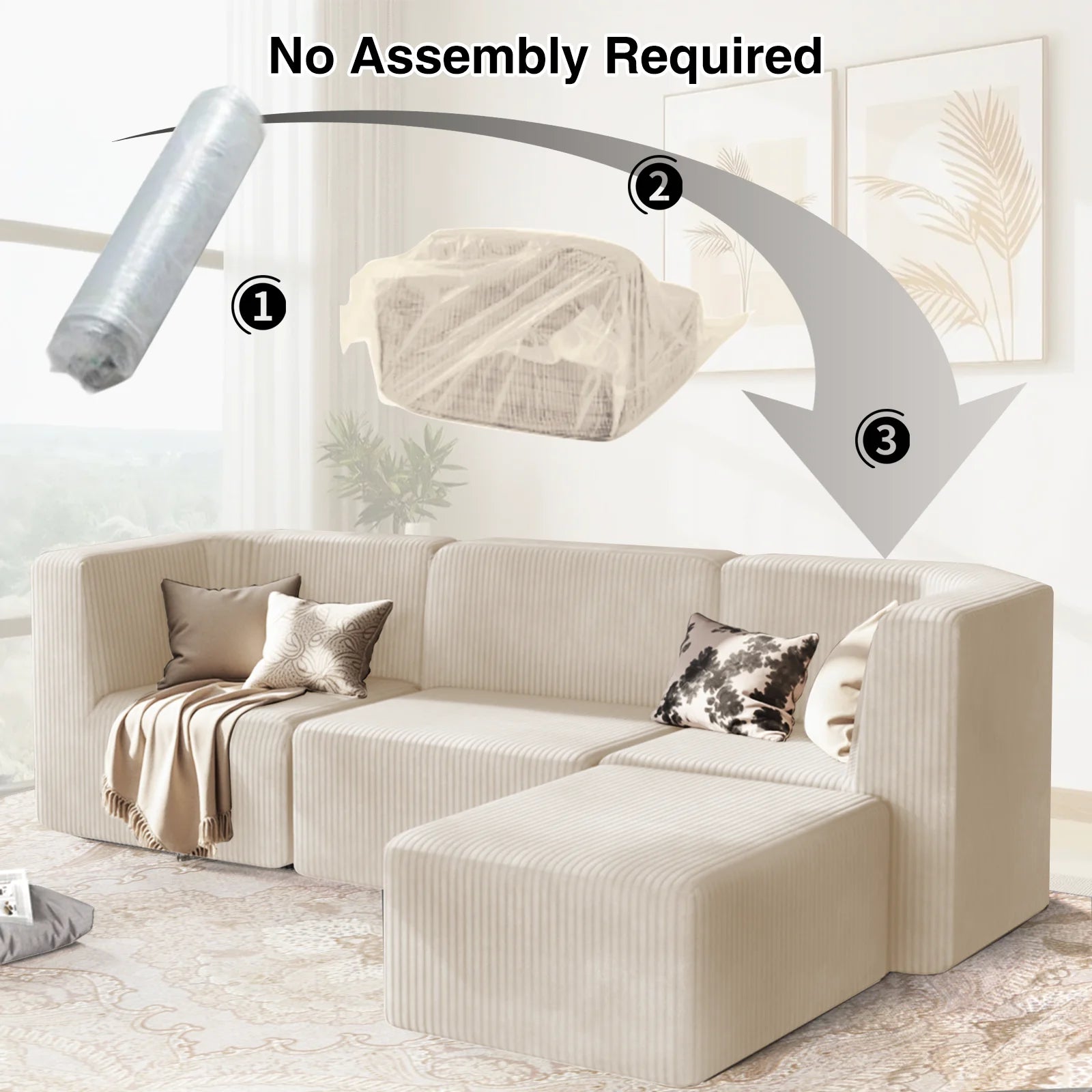 No Assembly: no need to install, just open the packaging the sectional fluffy couch will be ready to use and 100% fluffy state after 24 hours.