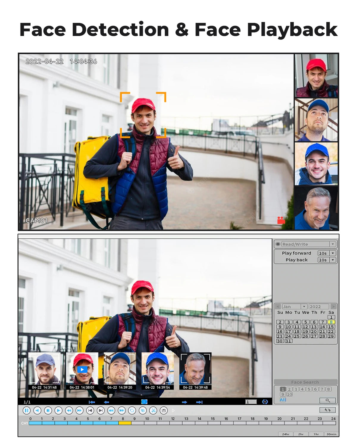 When face detection is triggered, the H.VIEW camera will push alarm information in real time. You can quickly search for video clips with the face playback function.