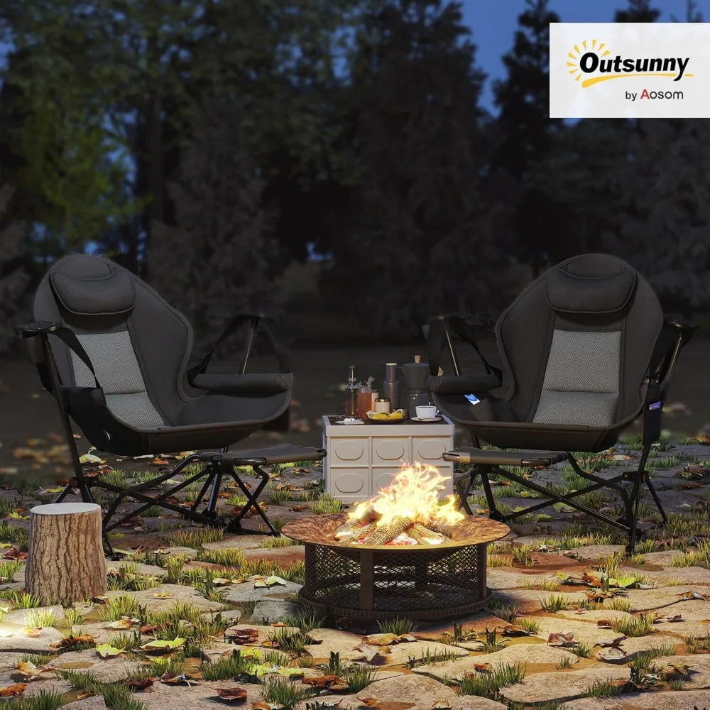 - Built to Last: This rocker camping chair set is built to withstand the elements. The chairs are made of 400D Oxford fabric with water-resistant and UV-protective coating, while the powder-coated metal frames offer stability, supporting up to 265 lbs each