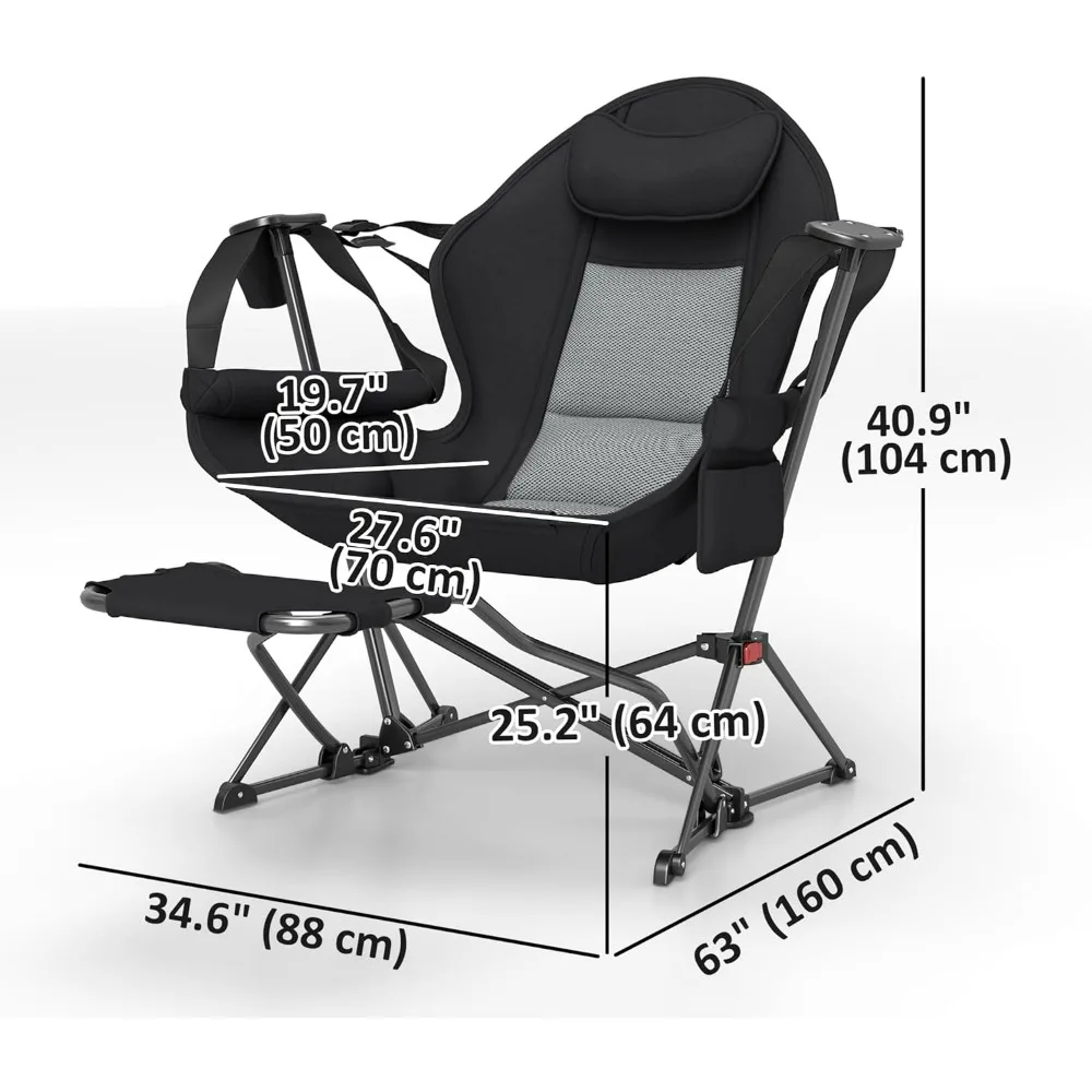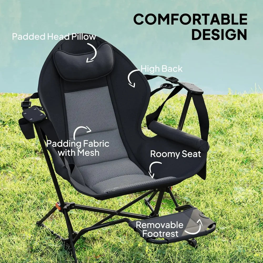 - Versatile Range of Motion: Adjust the strap on the rocking camping chair to find the most comfortable angle. Offers 90°-168° of gentle swinging hammock-like motion without ropes, making for easy relaxation by the campfire or soaking in scenic views