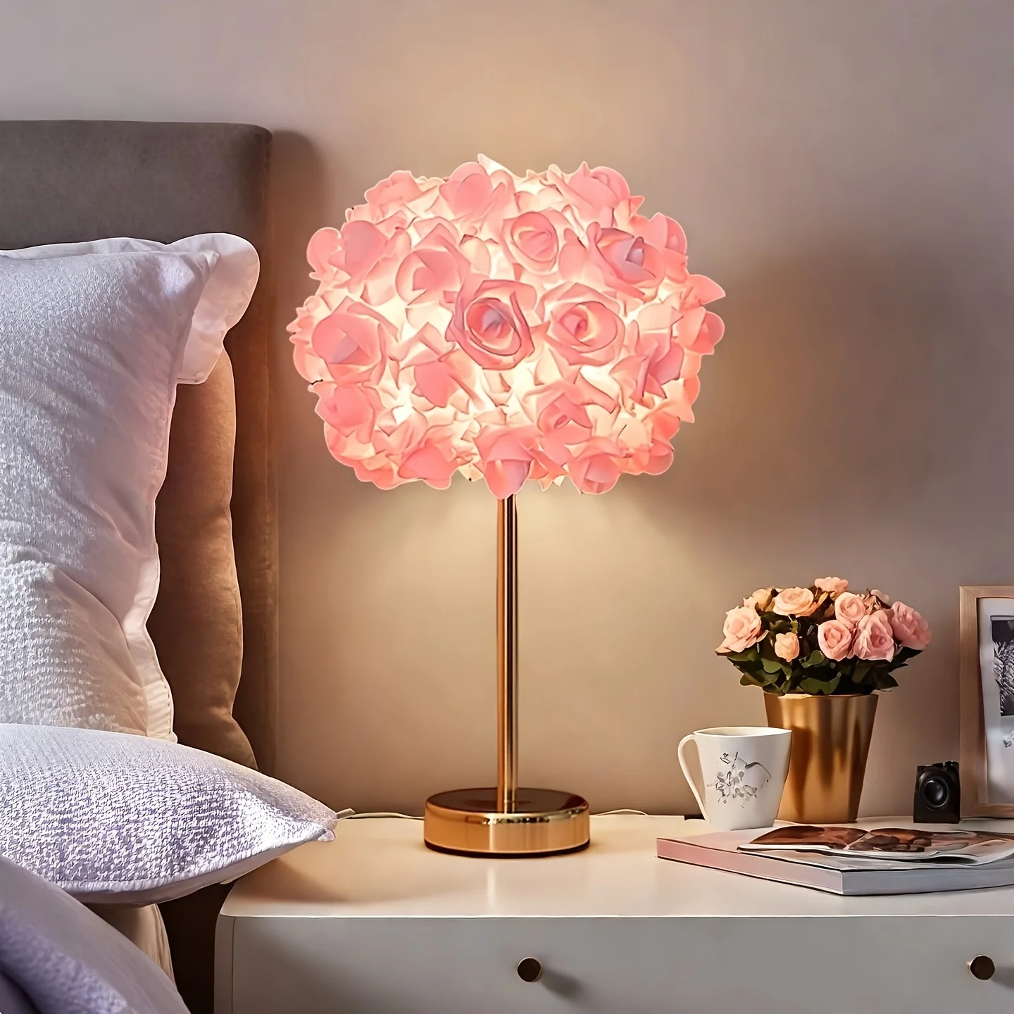 High-End LED Table Lamp with 52 Rose Flower Shade, Polished Metal Base for Bedside, Living Room, and Office Decor