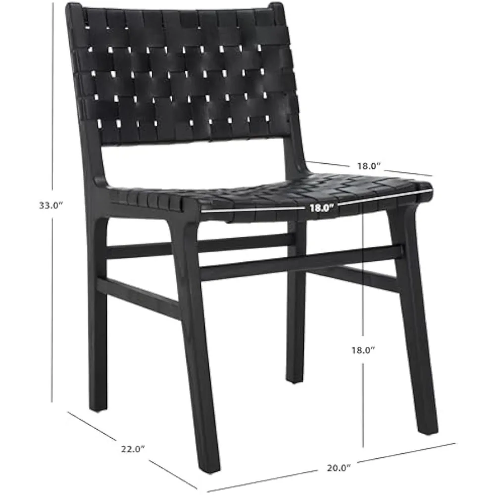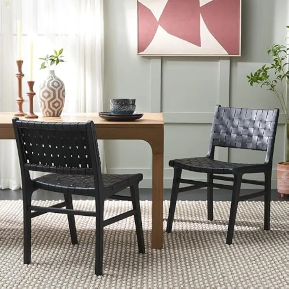 Home Collection Taika Black Woven Leather/Black Solid Wood Dining Chair Set of 2 (Fully Assembled)