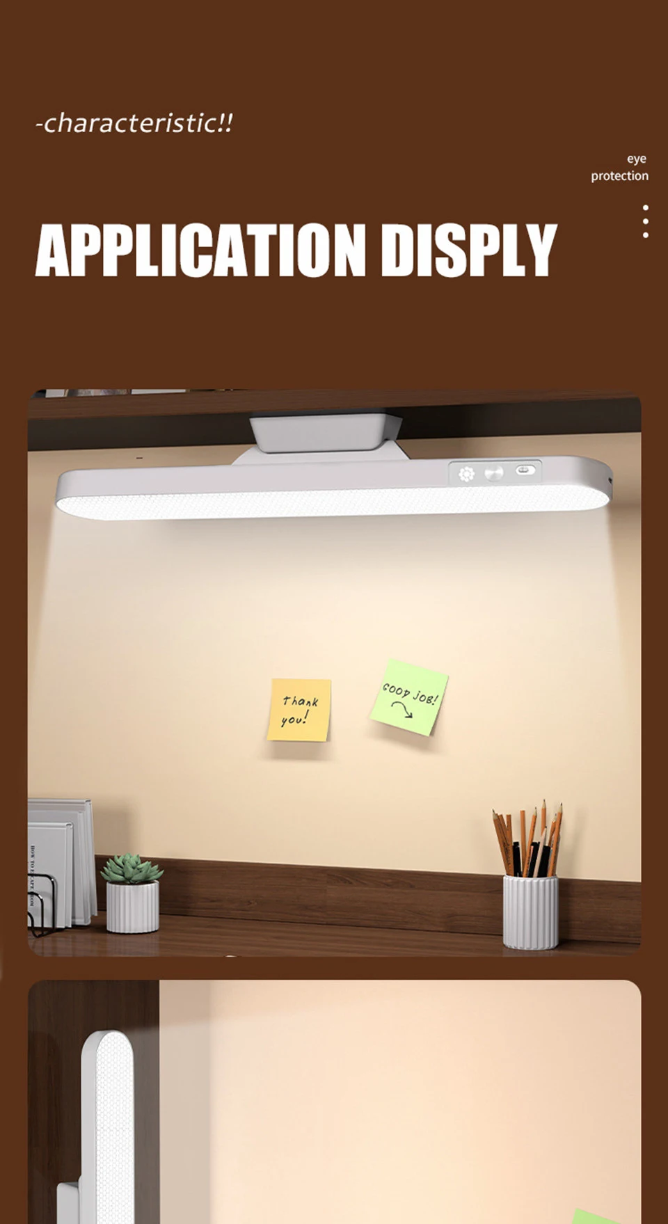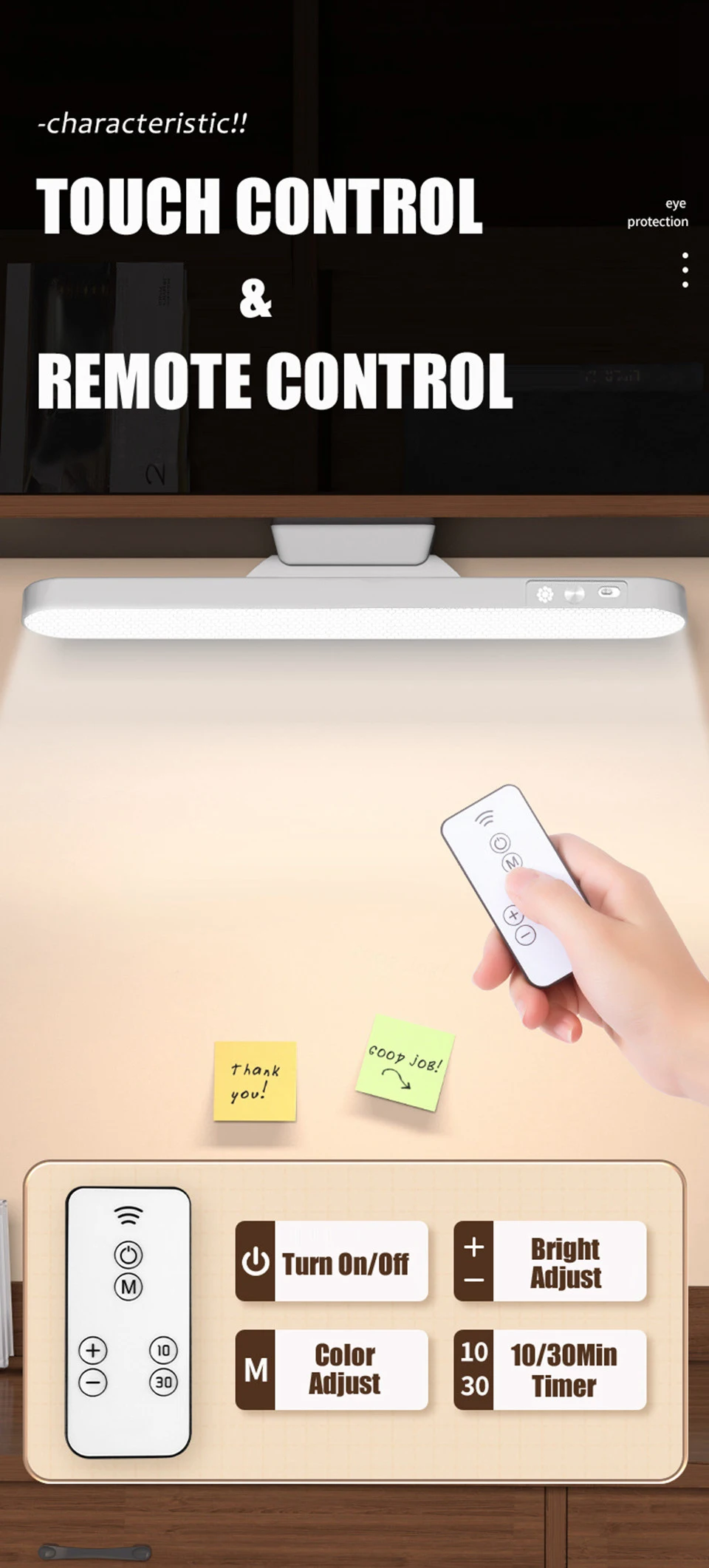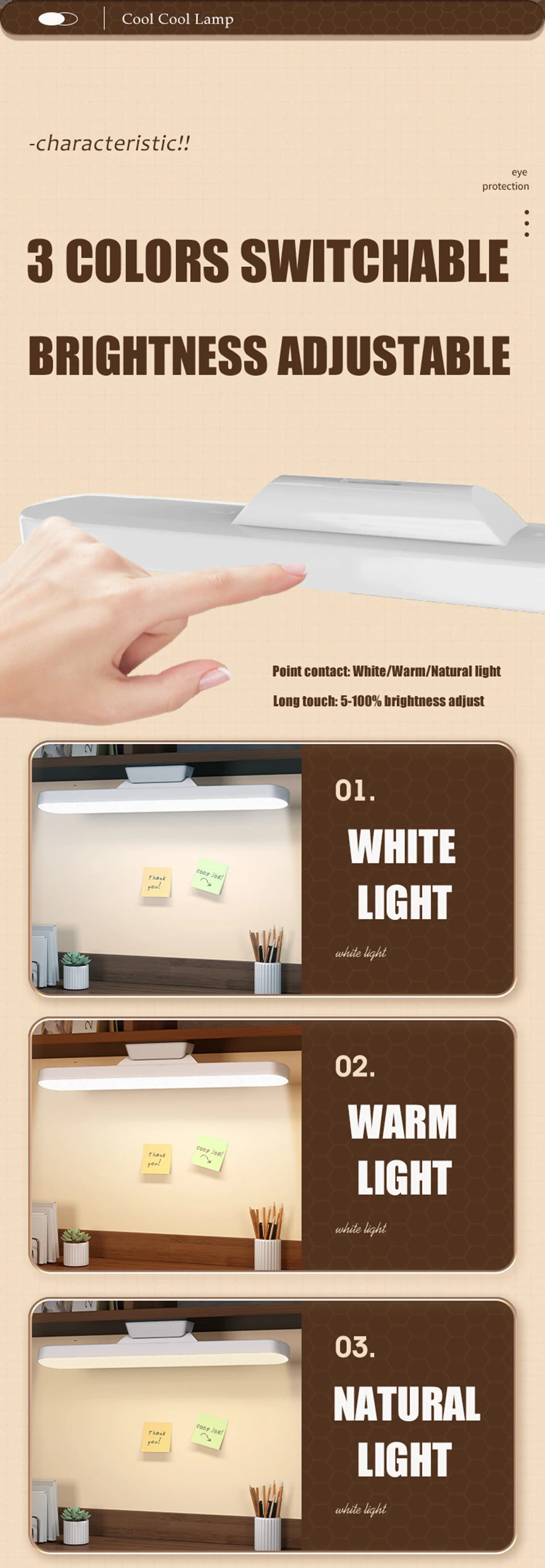 【Stepless adjustment of 3 color light brightness】The hanging desk lamp has three color temperature modes (3000K, 4500K, 6000K), and adopts a sensitive touch control design, long press for stepless adjustment, and click to switch three light colors model.