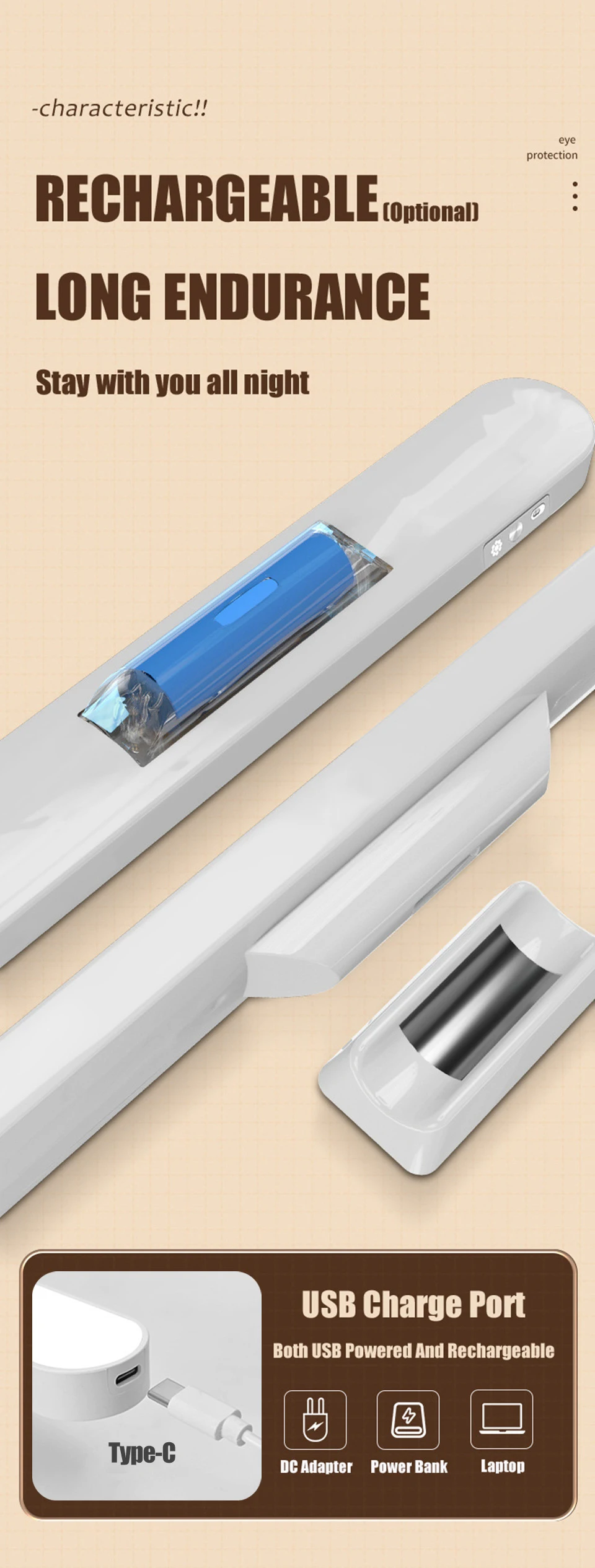 USB Desk Lamp Hanging Magnetic Eye-care Table Lamp LED Reading Light Rechargeable Dimmable Cabinet Closet Wardrobe Night Light