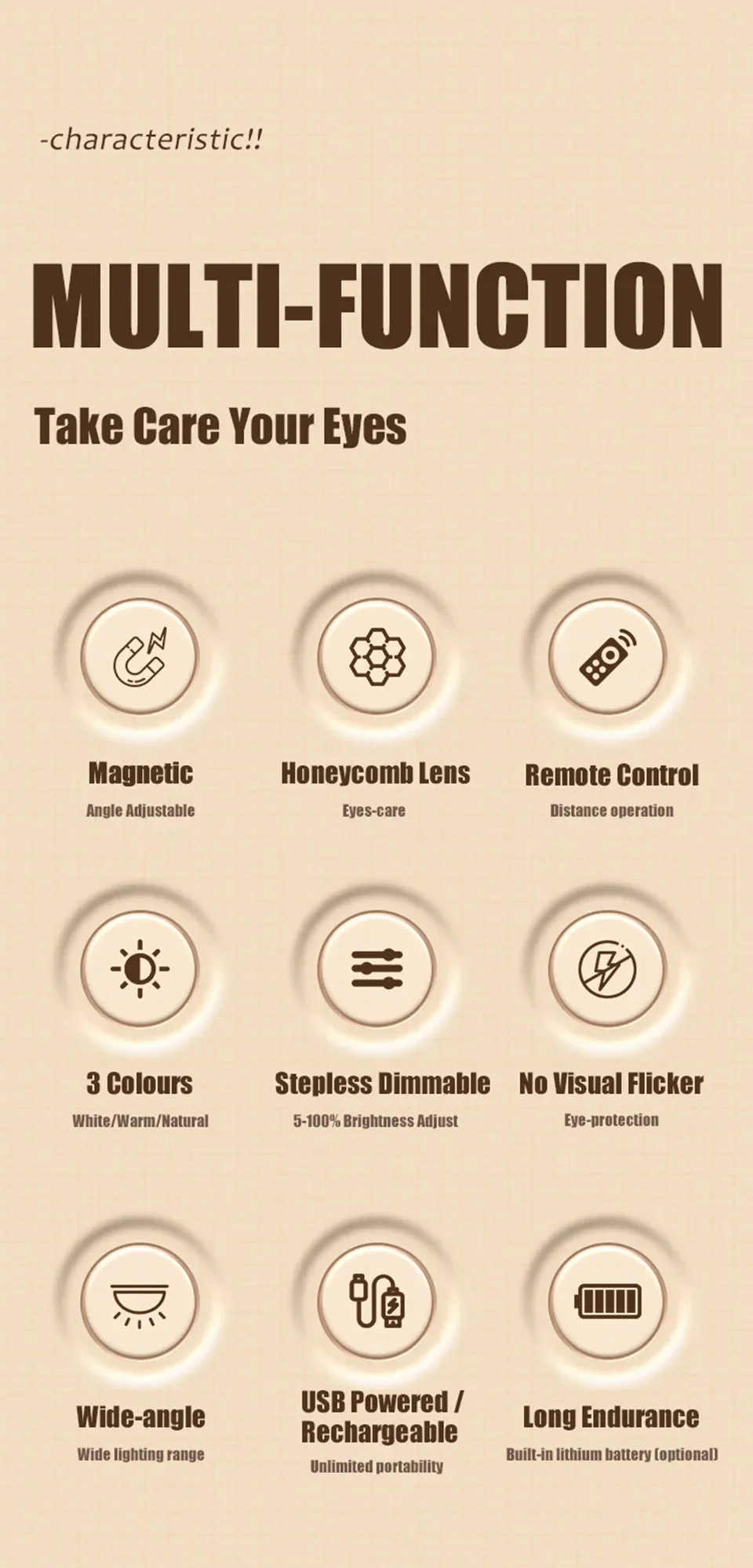 【Wide range of applications】The desk lamp can be used as a reading and work light in the examination room, college dormitory, home office, kitchen, garage, vanity mirror and bedroom bedside night light, etc. Can also be used as a flashlight in camping or in the dark.