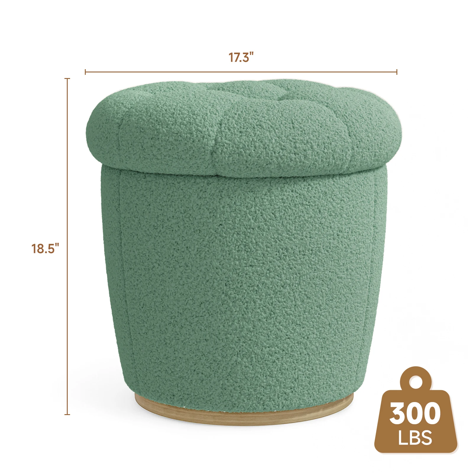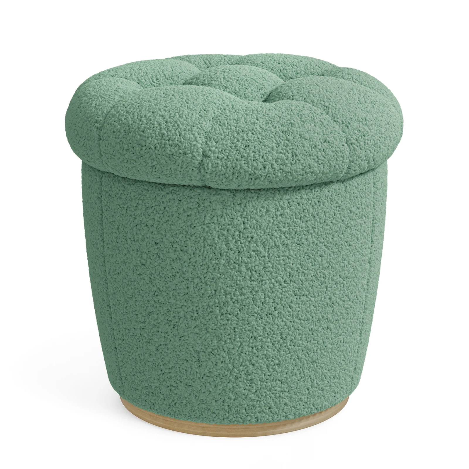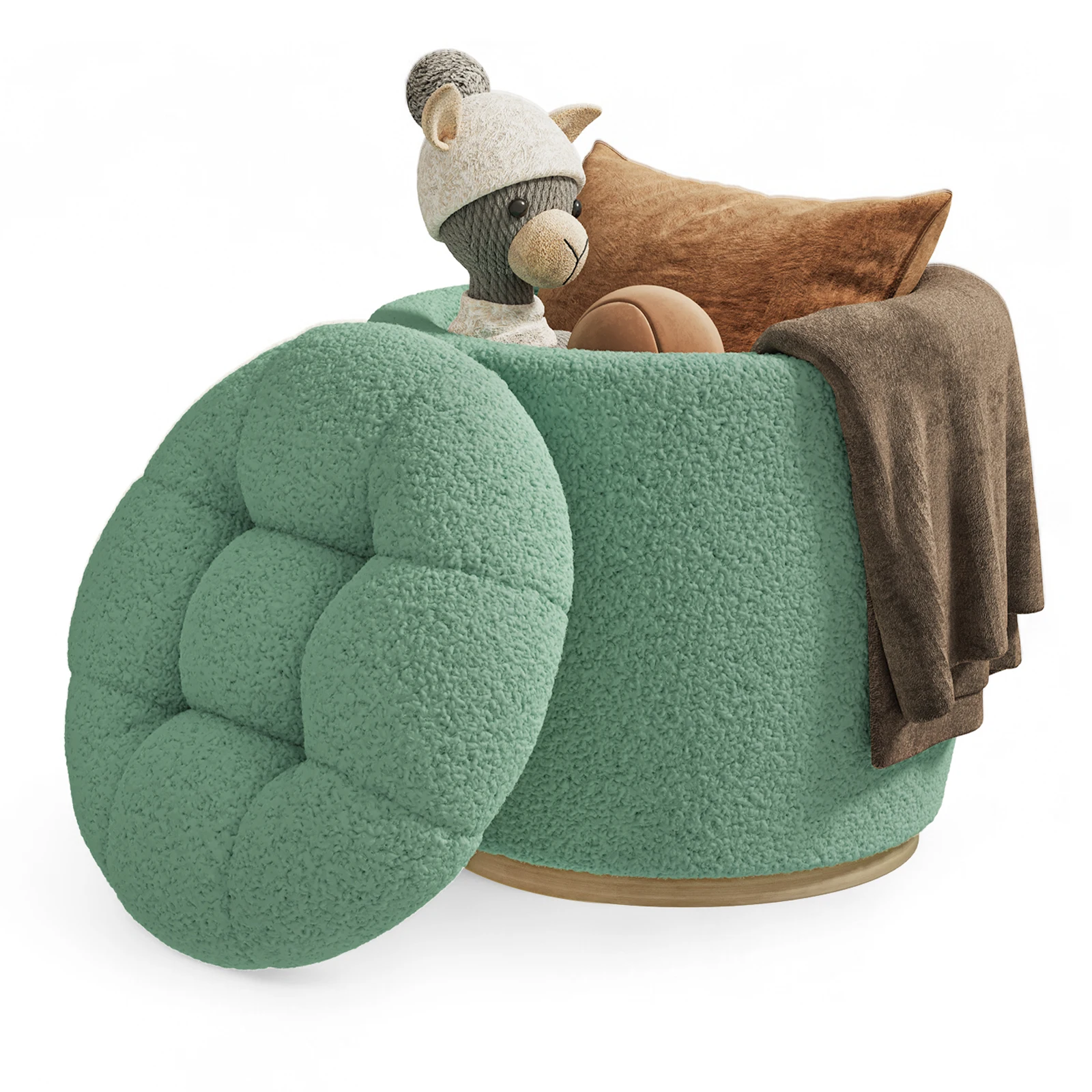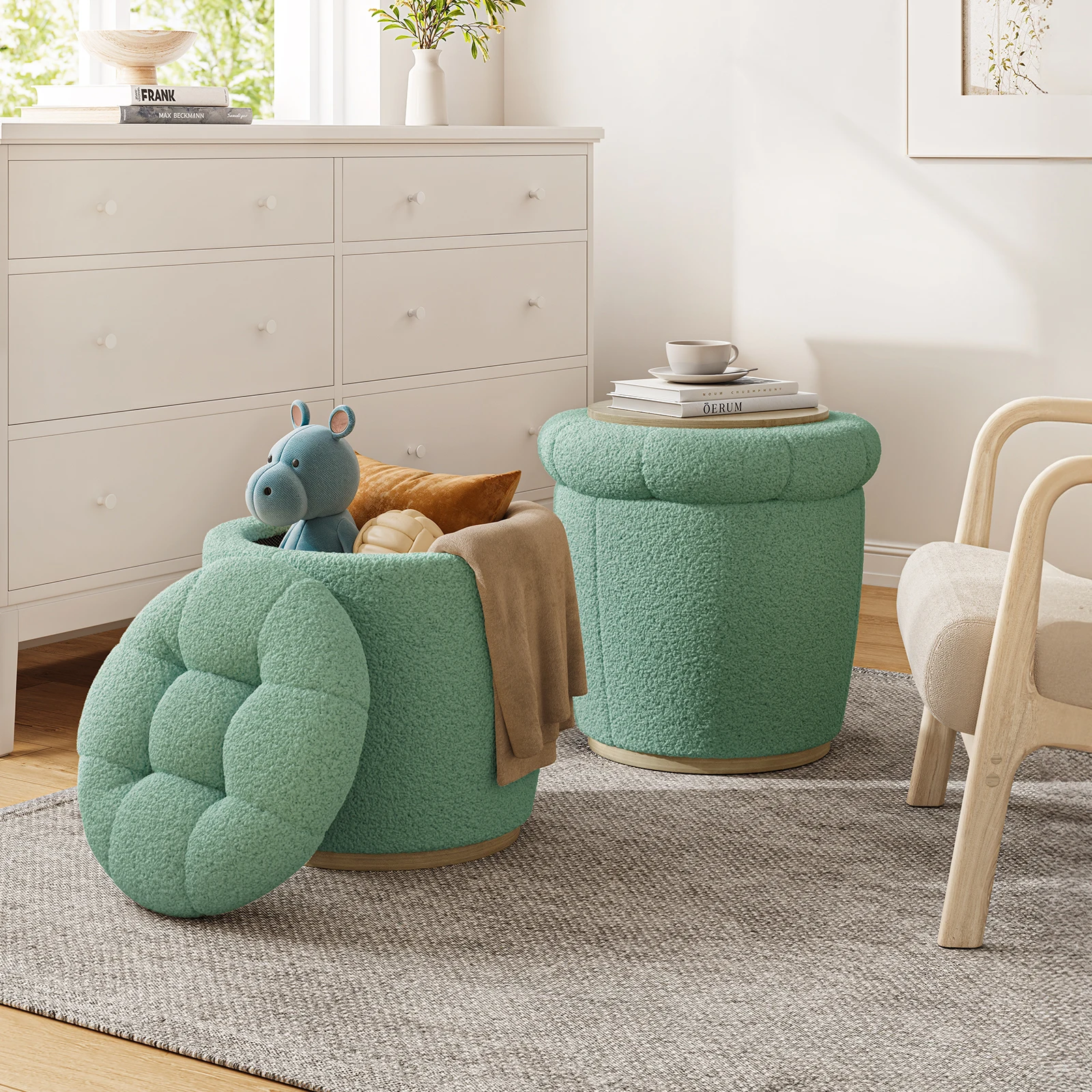 Matcha Green Lambswool Round Storage Ottoman,Upholstered Vanity Stool,Multi Footrest&Table Alternative, For Living Room&Bedroom