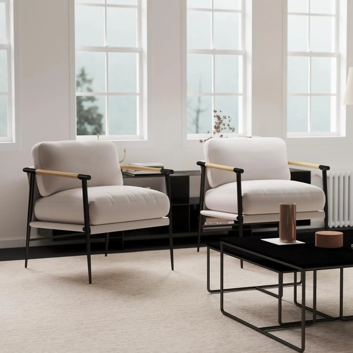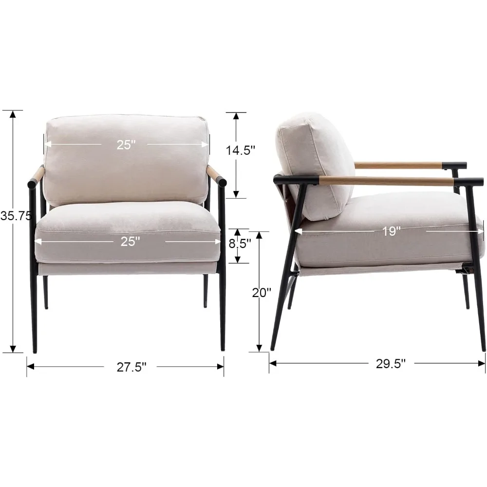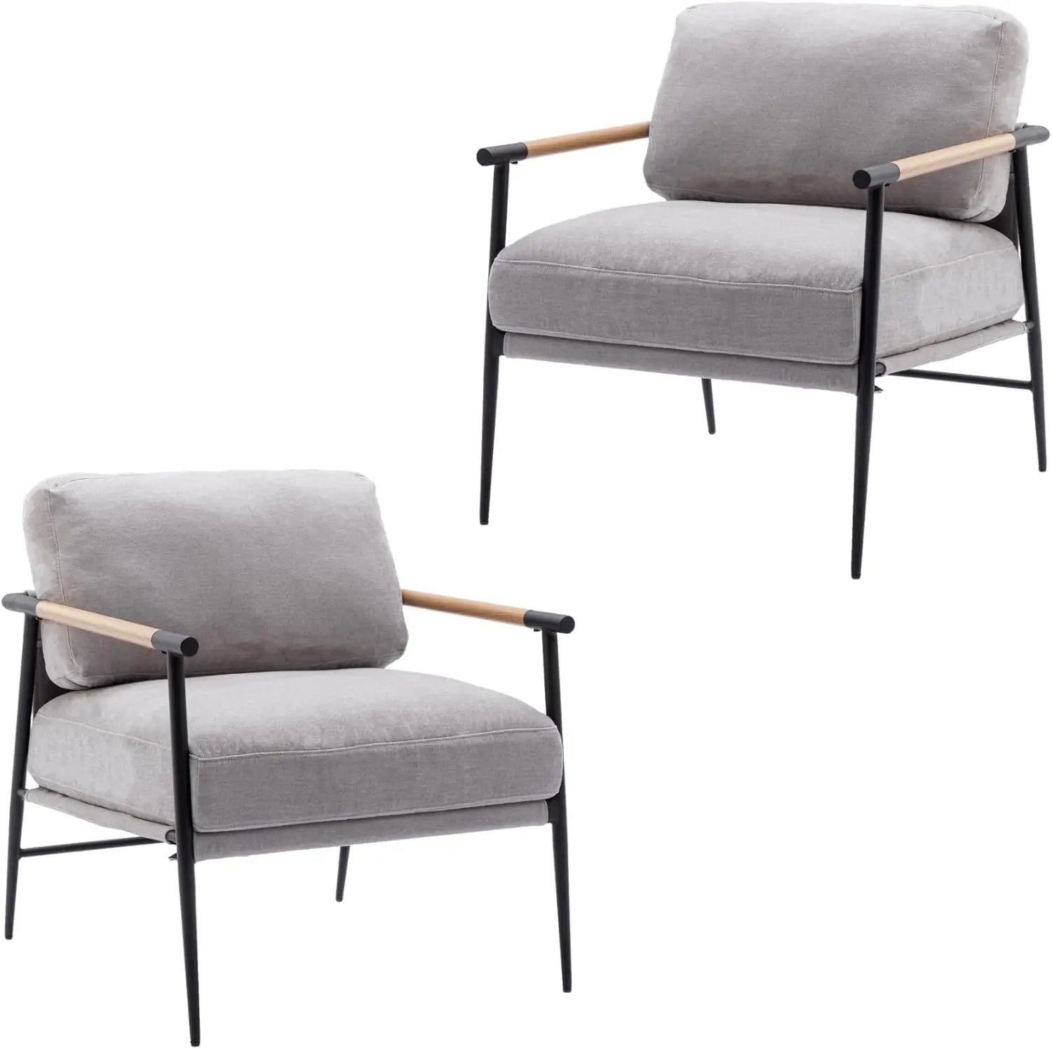 Mid-Century Accent Chair Set of 2, Soft Armchair Chenille Fabric Lounge Chair with Black Metal Legs, Upholstered Leisure Chair