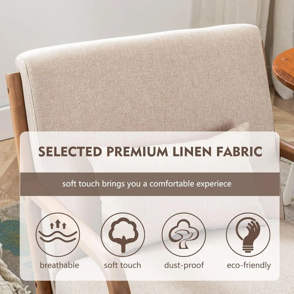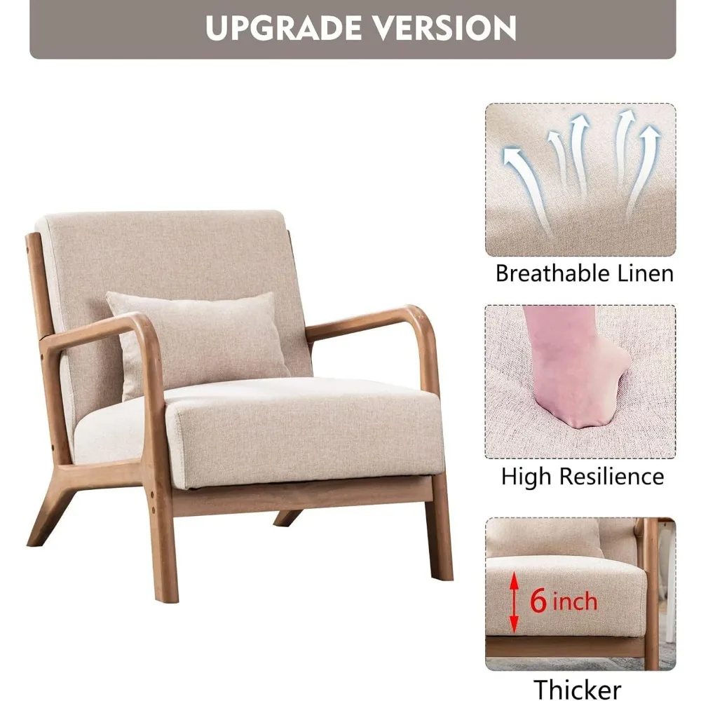 Mid Century Modern Accent Chair, Comfy Fabric Living Room Chairs with Solid Wood Frame, Lounge Reading Armchair, Easy As