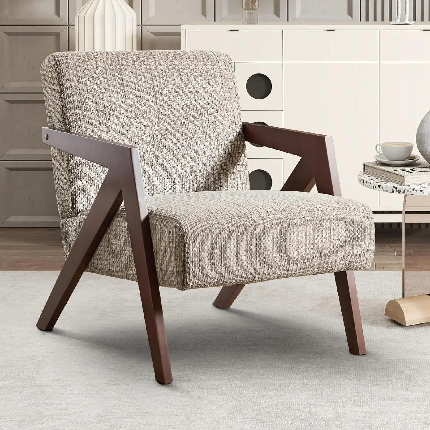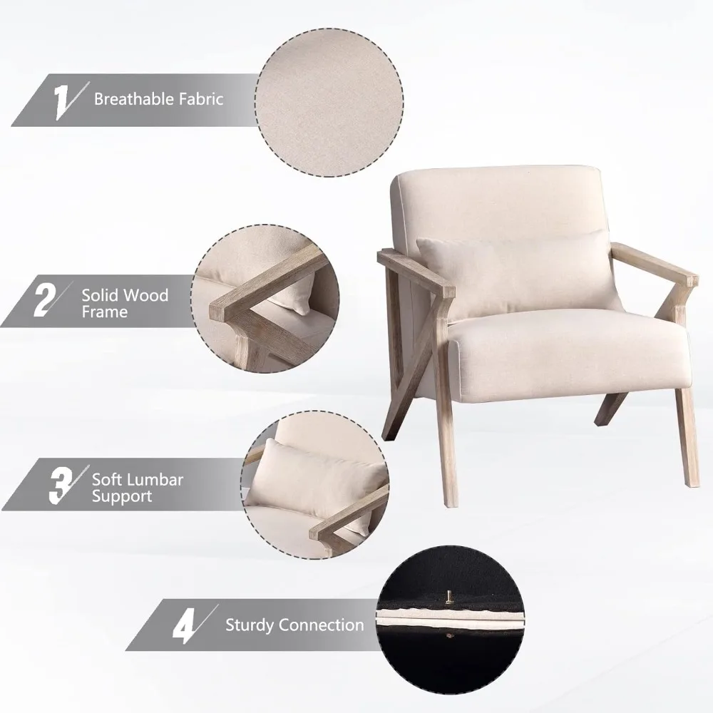 Mid Century Modern Chair with Wood Frame, Upholstered Armchair with Waist Cushion, Accent Chair for Living Room Bedroom Ap