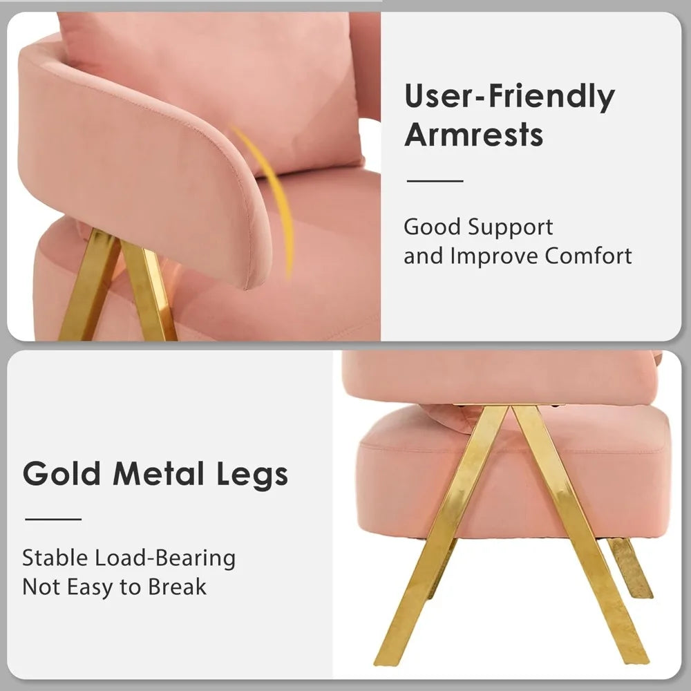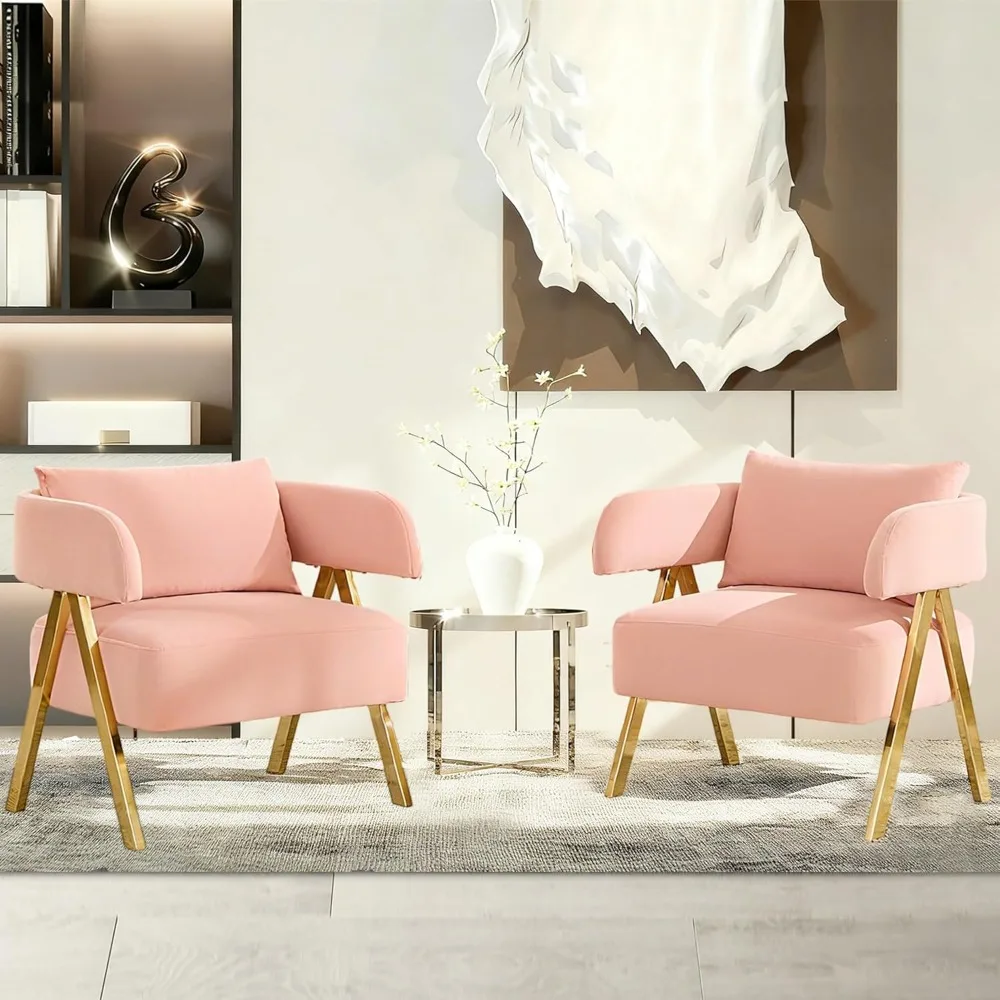 Modern Pink Accent Chairs Set of 2, Velvet Barrel Accent Chair for Living Room Bedroom, Comfy Reading Armchairs