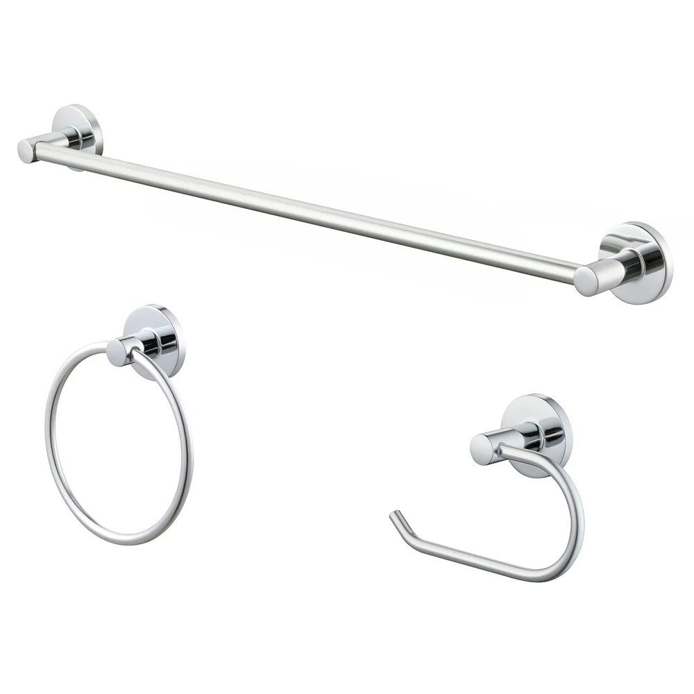 Modern Round 3-Piece Bath Accessory Set Towel Bar Towel Ring Toilet Paper Holder Chrome Durable Metal Easy Install
