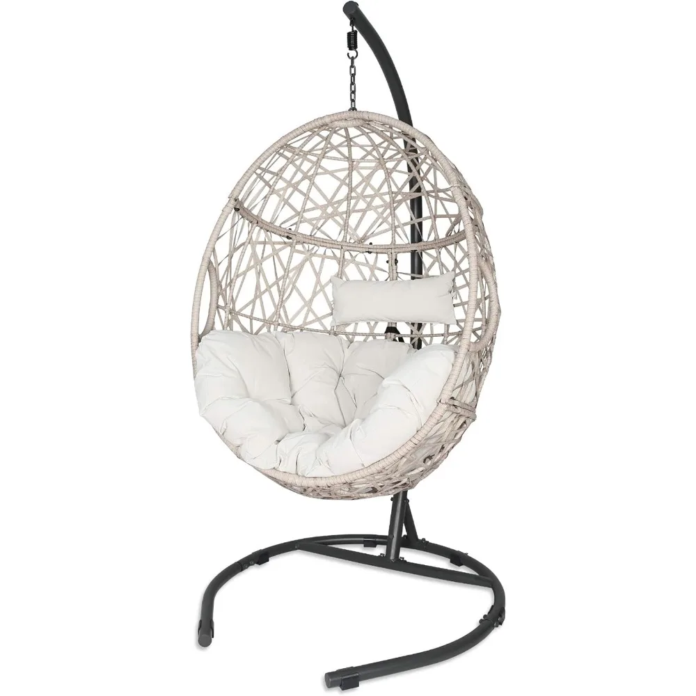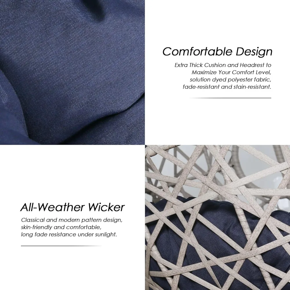 Patio Wicker Egg Hanging Chair, Outdoor Rattan Hammock Swing Chair with Stand and Cushion for Bedroom Balcony Garden