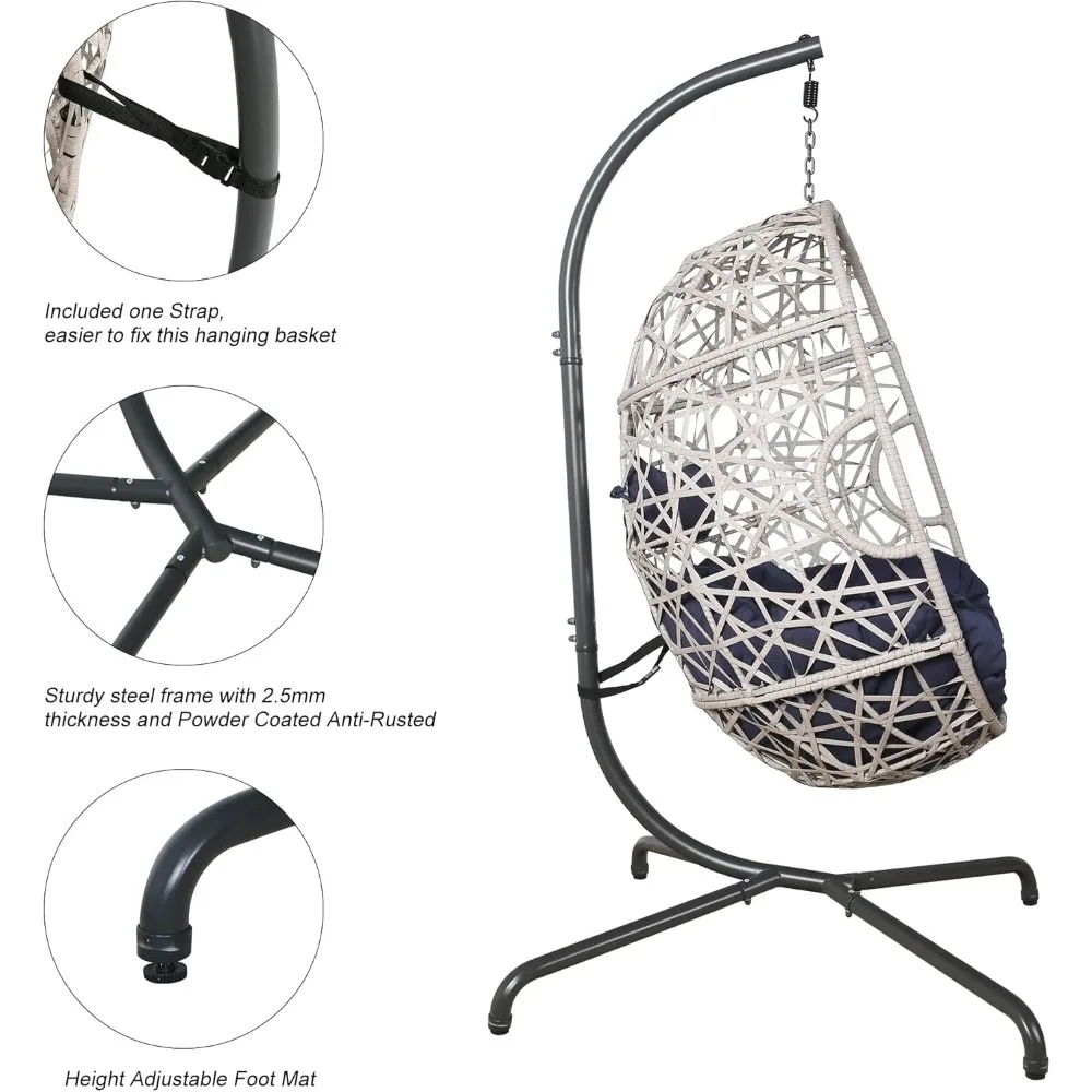 - The egg swing chair made with high-quality resin polyethylene wicker wrapped around strong steel frame. Ergonomic curved mid back perfectly supports your whole body, making you enjoy sunshine and warm weather