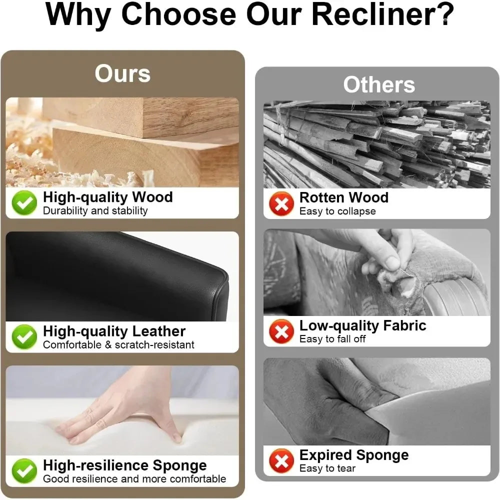 - 【Effortless Assembly】This rocker recliner can be assembled in just 10-15 minutes with no additional tools. According to the instructions provided by the small rocking recliner, one person can also operate it quickly, allowing you to immediately enjoy the leisure time brought by the leather recliner. If any transport-related damage or operational defects occur, please feel free to contact us. We are committed to delivering the best after-sales service possible.