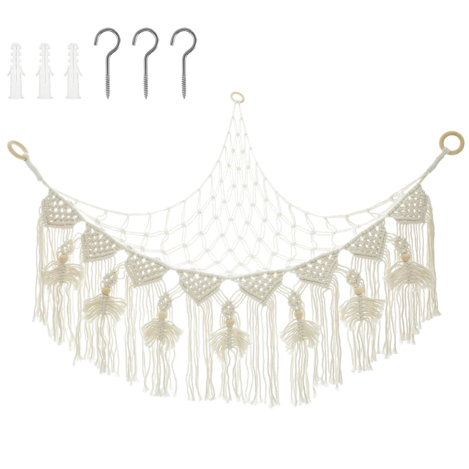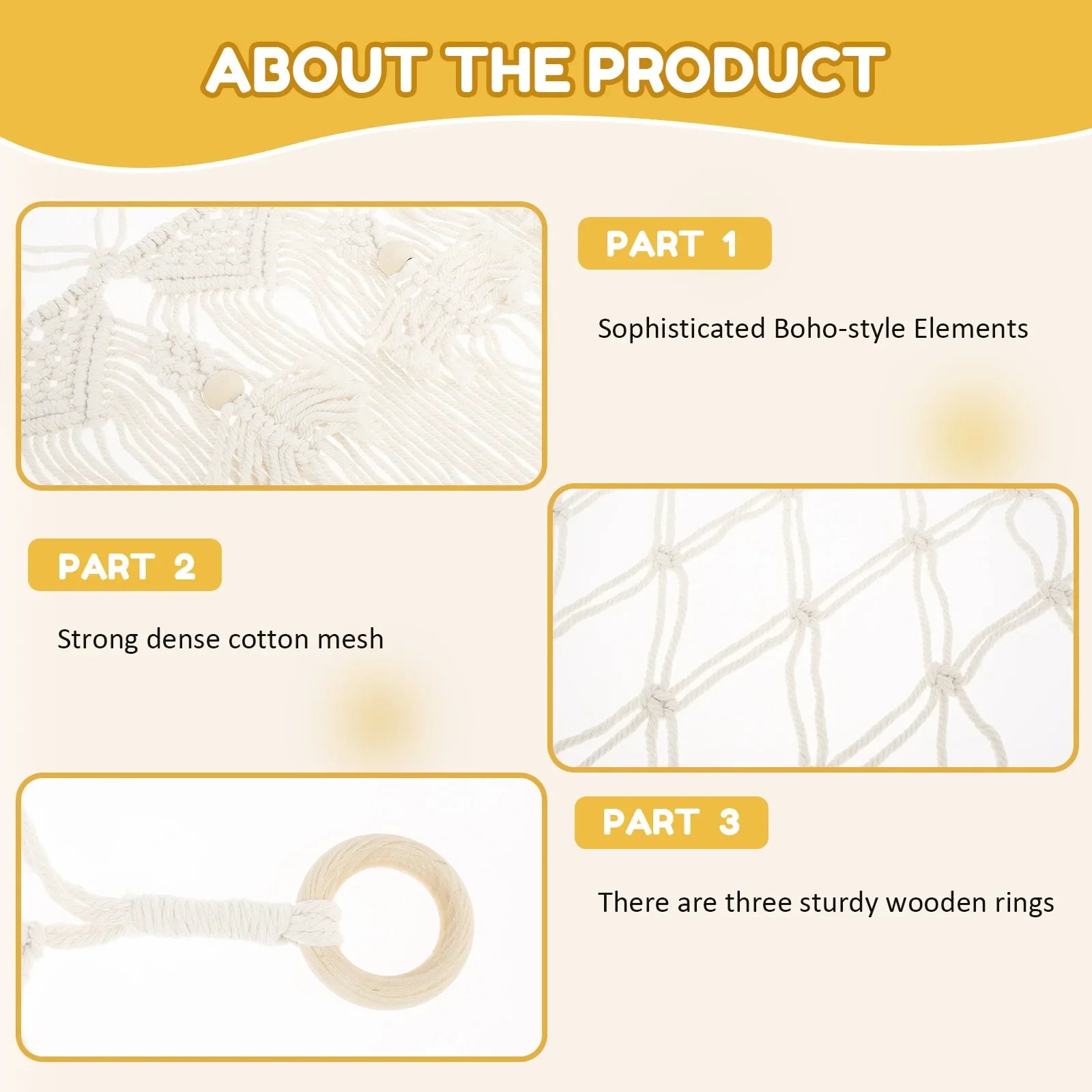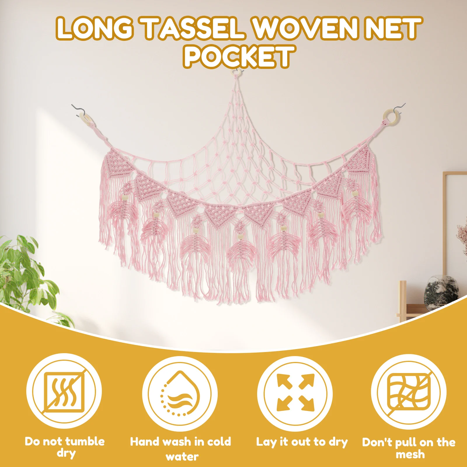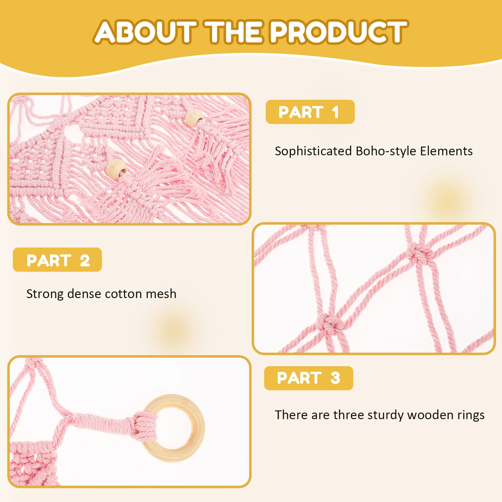 Multipurpose: Plush toy hammock with bohemian leaf tassels; wooden hanging rings and beads; not only a toy storage organizer for playroom; bedroom; nursery; kindergarten; girls and boys bedroom; kids room; but also a unique room decoration; multiple colors for your choice