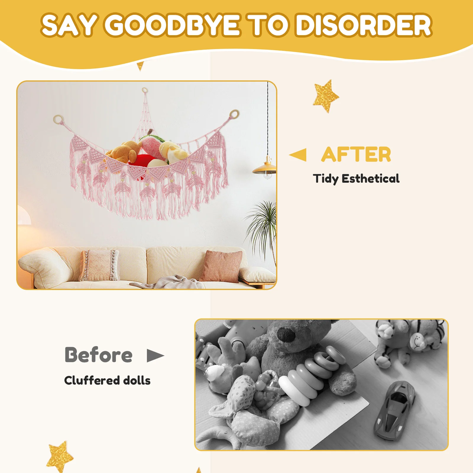 Space Saving: The triangle hammock makes full use of the wall and corner space, providing a spacious storage area for many stuffed animals, keeping it neat and organized, saving space