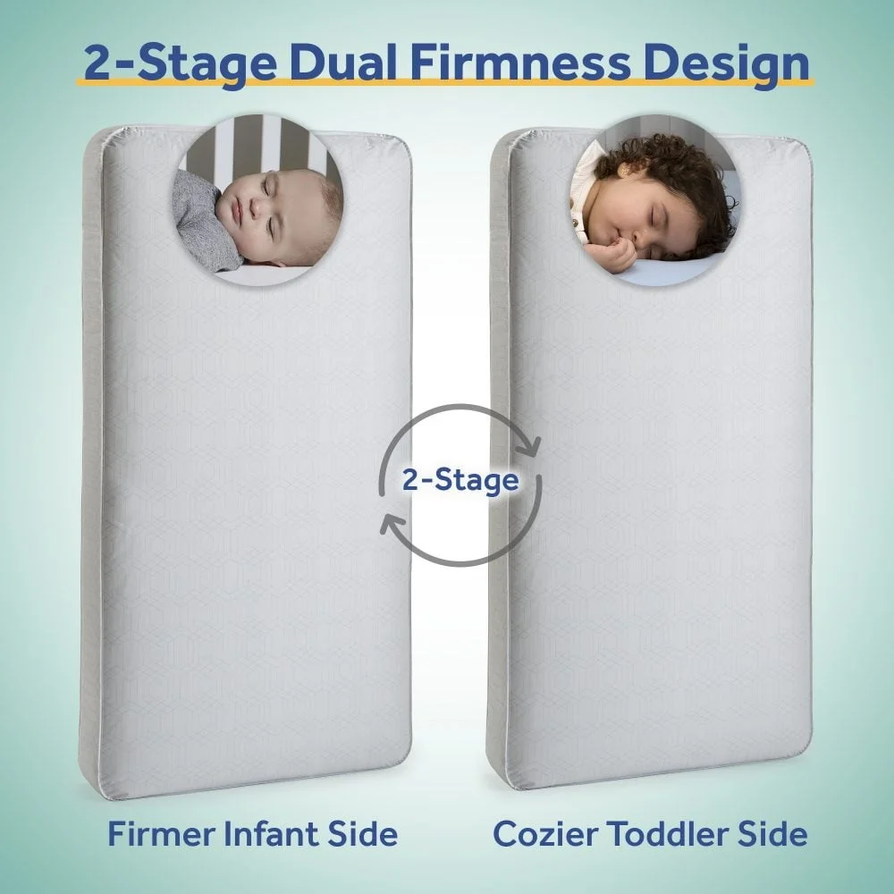 Ultra-Premium 2-Stage Antibacterial Baby Crib Mattress 204 Coil Waterproof Extra Firm Toddler Bed Sleep Surface GREENGUARD
