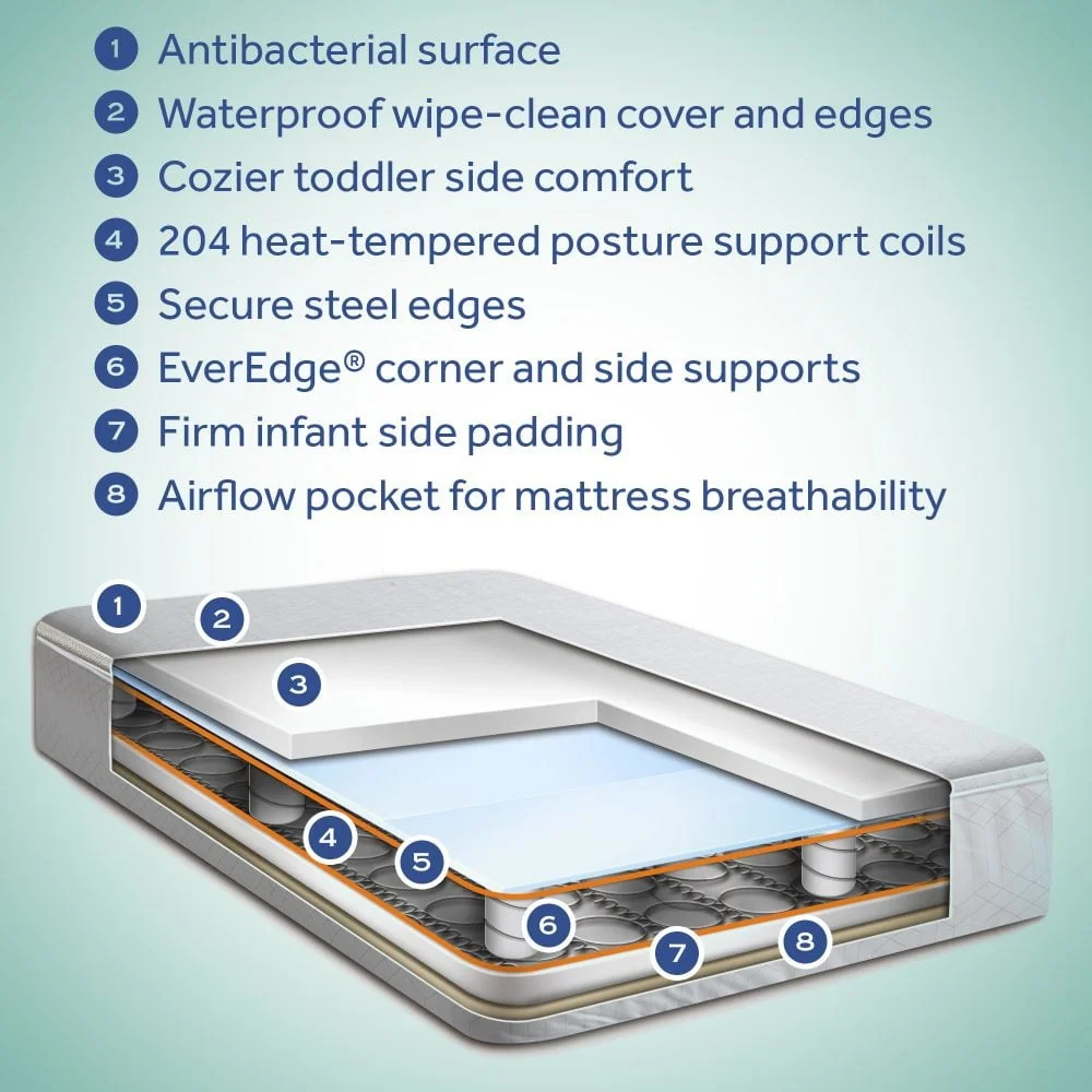 Supportive steel perimeter keeps edges firm just like an adult mattress and Ever Edge corner and side protectors secure key areas of the crib mattress.