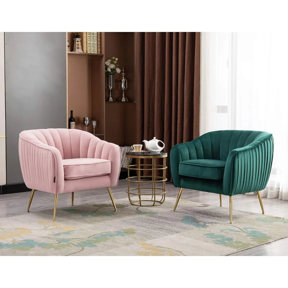 Velvet ModernTub Barrel Arm Chair Upholstered Tufted with Golden Legs Accent Club Chair for Living Reading Room Bedr