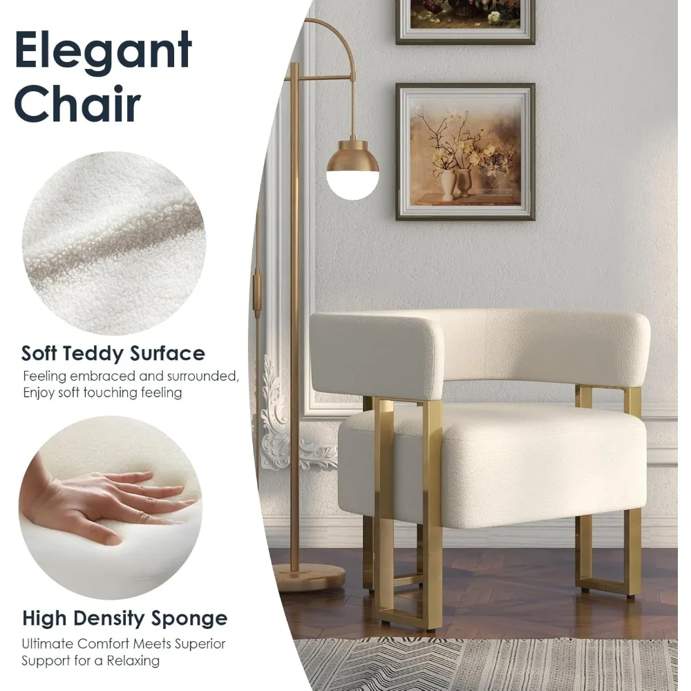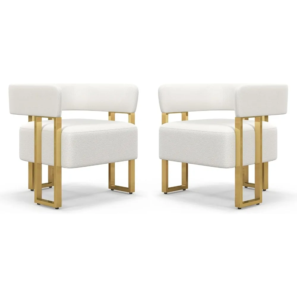 White Sherpa Boucle Accent Chair Set of 2, Modern Armchair Bucket Chair Comfy Side Chair Round Arm Chairs for Living Room