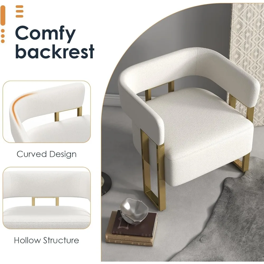 - 【Unique & Elegant Design】The living room chair features a special U-shaped round back. With enough sponge filling, the backrest will give you plenty of support and coziness as you sit. The small bedroom chair with a 8.2'' thick cushion seat upgrades your sitting experience and creates a world with permanent softness. The chairs are constructed to be lightweight to move easily but sturdy enough to support a normal weight without shaking