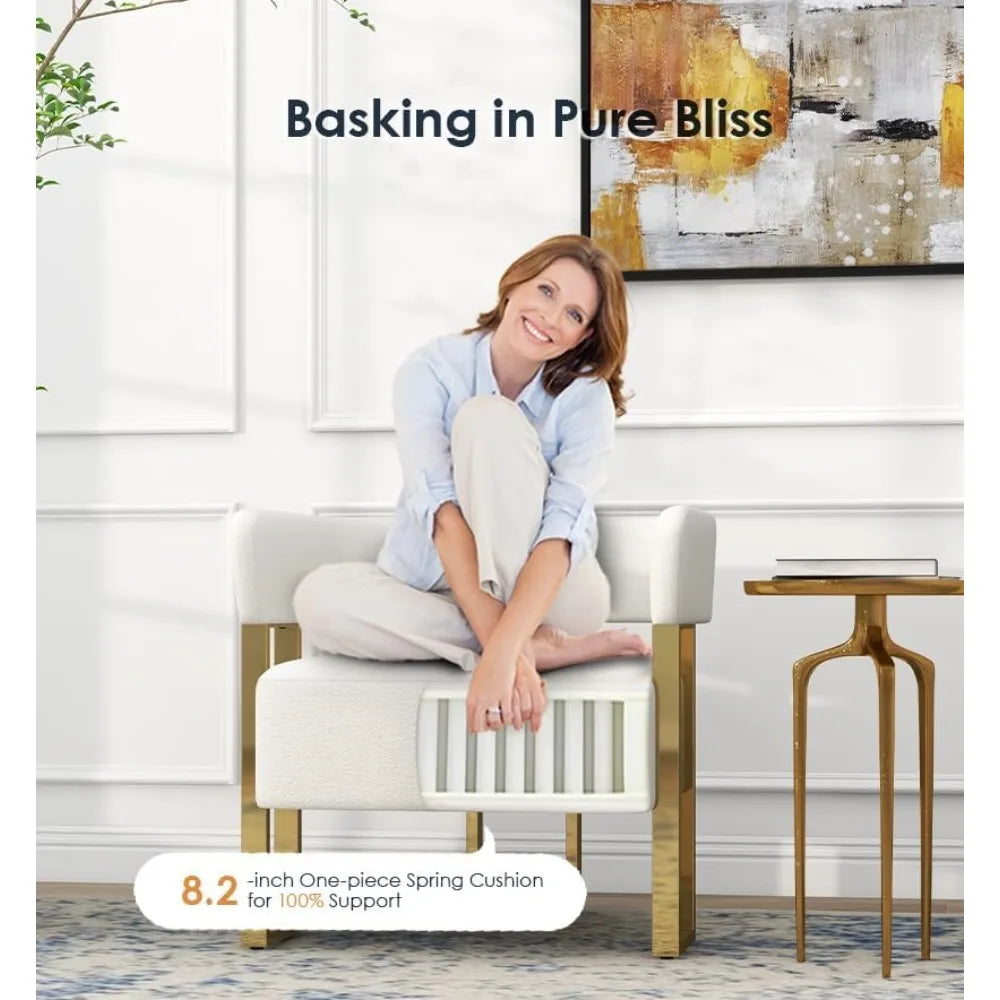 - 【Thicken Golden Metal Legs】These gold legs not only contribute to the cute chair's aesthetic appeal but also provide reliable stability to overall structure. The vanity chair for makeup room has a weight capacity of up to 330 lbs, which will be suitable for various users. The legs are equipped with non-slip footpads. They can reduce scratch on the floor when you move it and achieve better balance